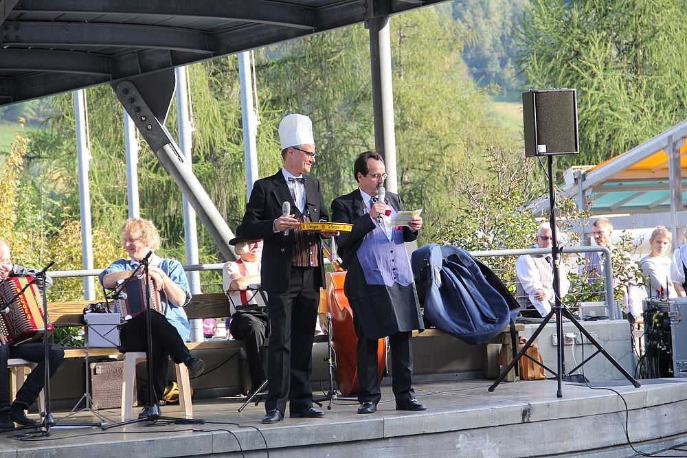 - Eröffnungsakt in der Arena, mit der ad hoc Kapelle und einer kleinen Showeinlage von Andreas Wirth und Übersetzer Yvan Mayor.