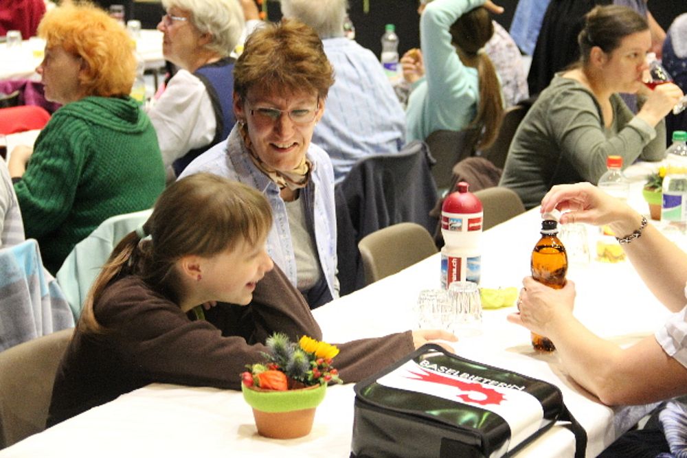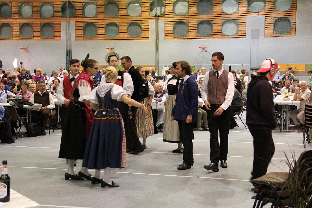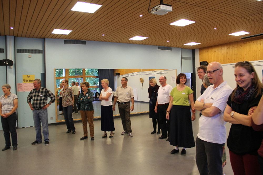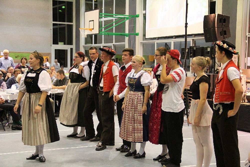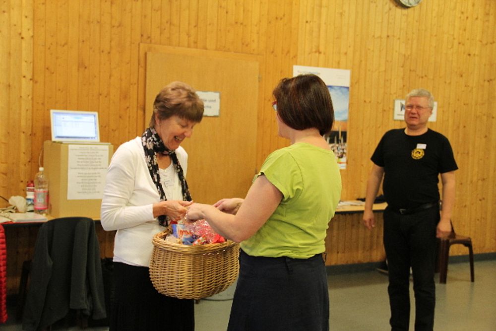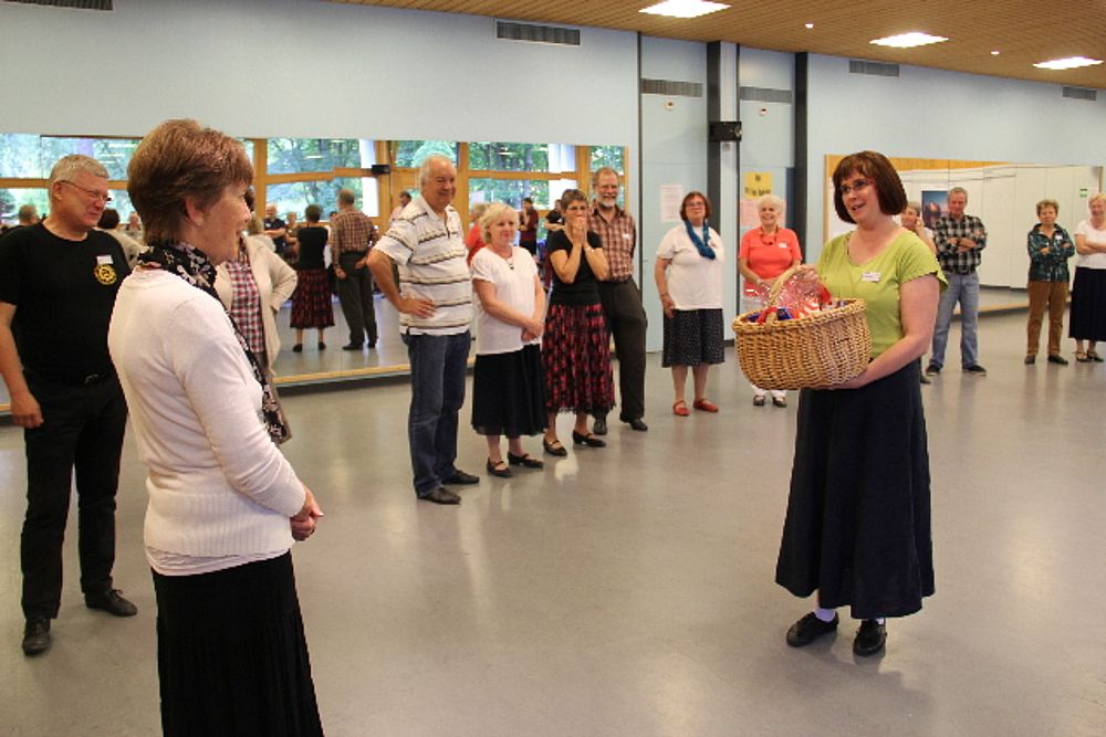 - Die bilingue Tanzgruppe, in der zahlreiche BaselbieterInnen mittanzen, überreicht der abtretenden Leiterin Yolande Réviol ein auf Initiative von Sarah Berger entstandenes Abschiedsgeschenk.