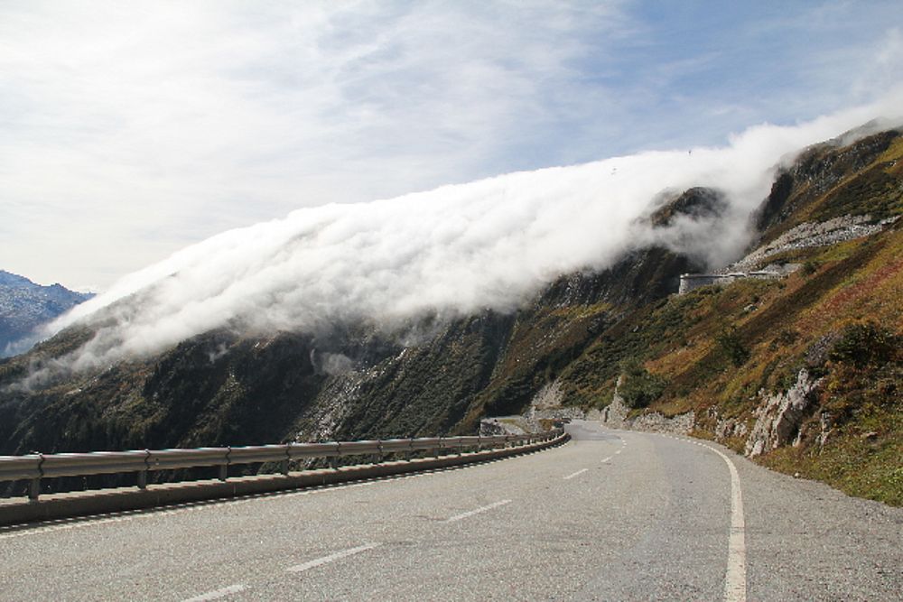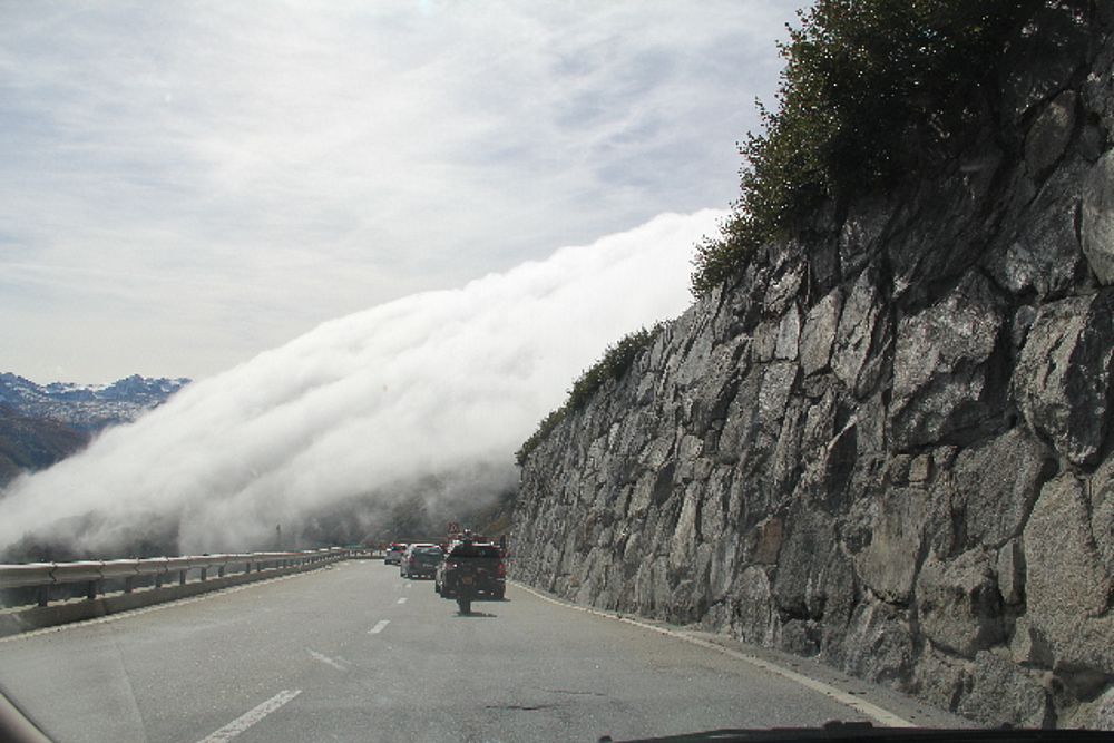 - Wer am früheren Sonntagnachmittag über den Grimselpass (oder auch Furkapass) anreiste, erlebte ein seltenes Naturspektakel. Nach Sonnenschein im Haslital herrschte auf den letzten Kilometer zum Pass dickster Nebel. Kaum war die Passhöhe überquert, erschien blauer Himmel und Sonnenschein. Und rechterhand floss ein breites Nebelband ins Rhonetal hinunter, wo es sich laufend auflöste.