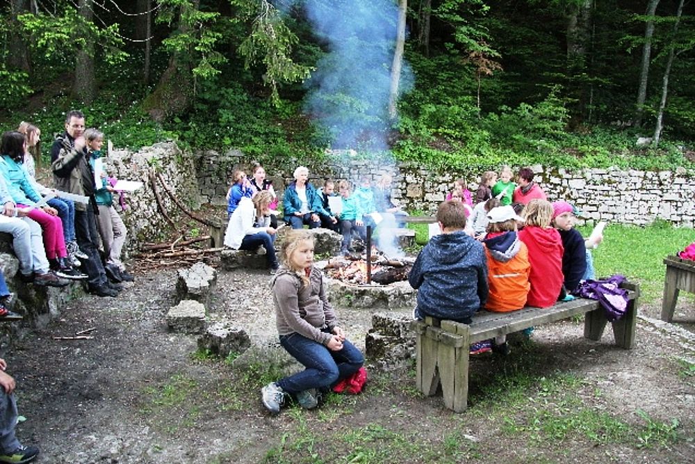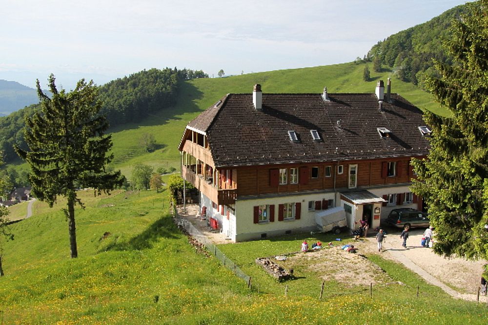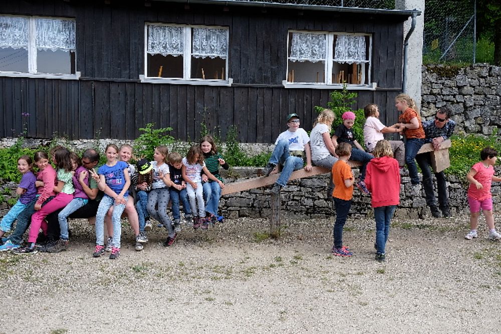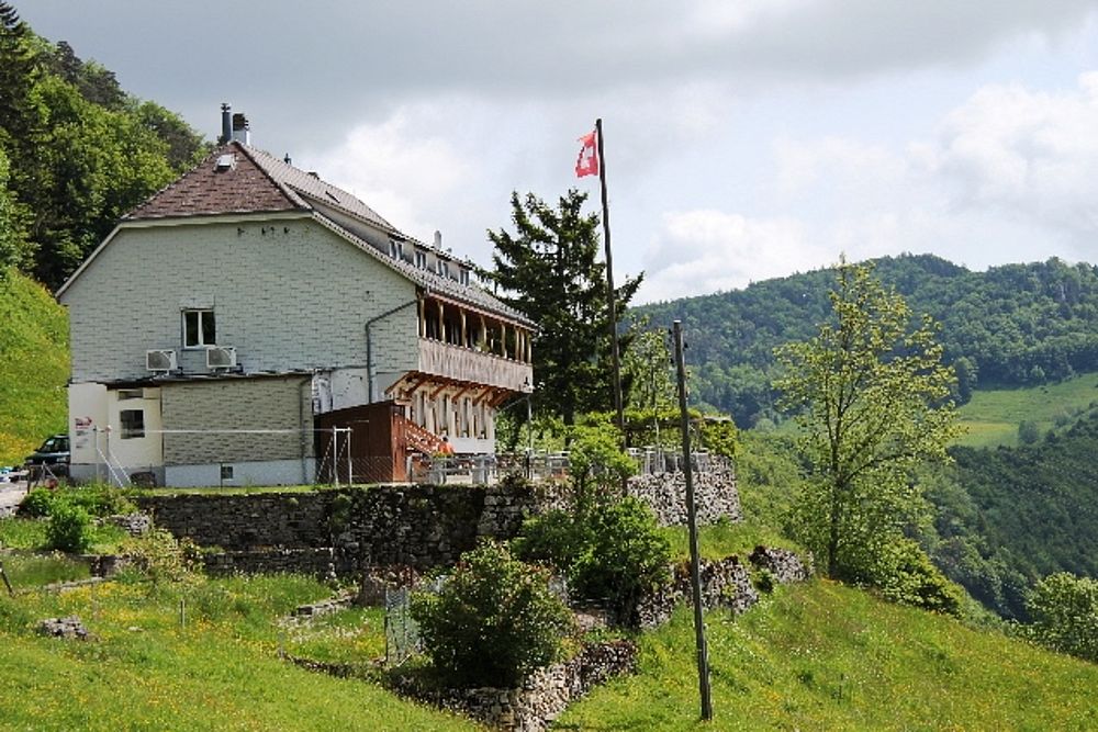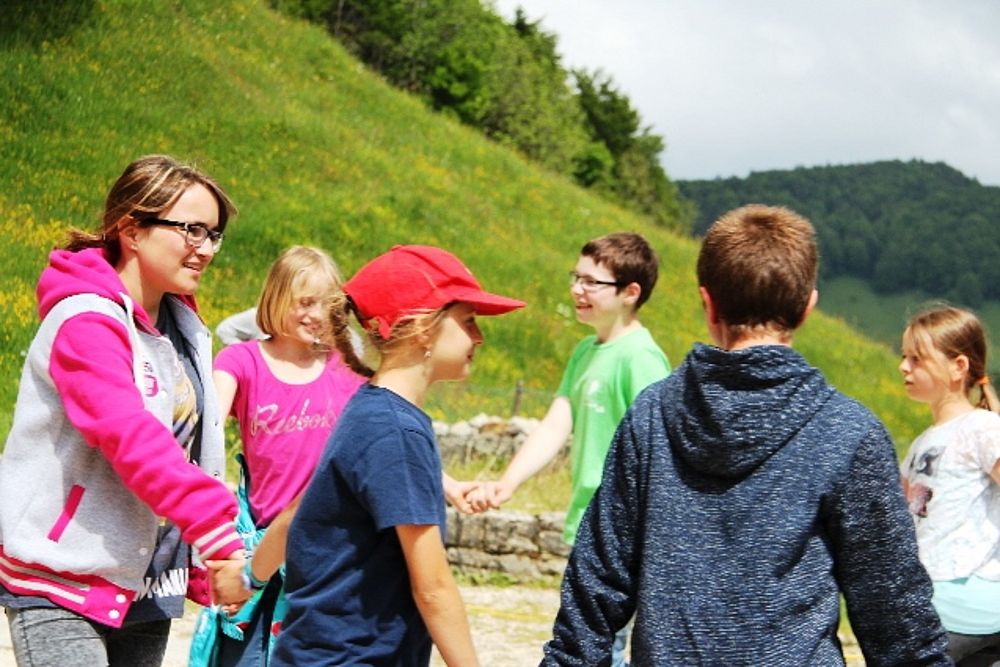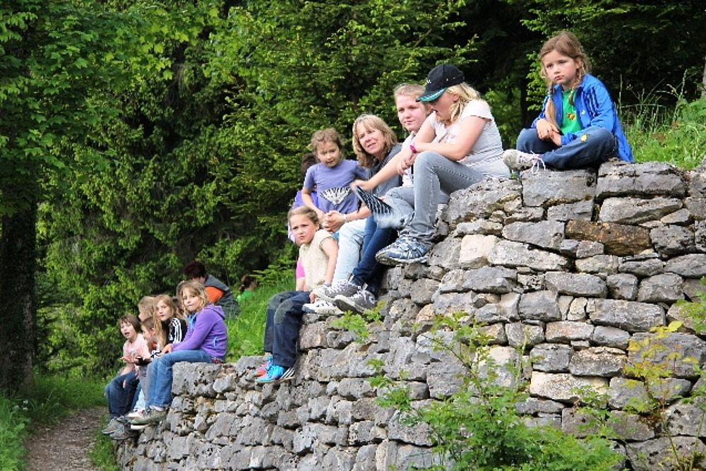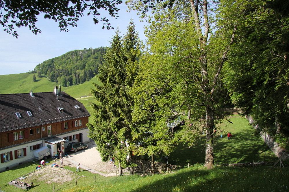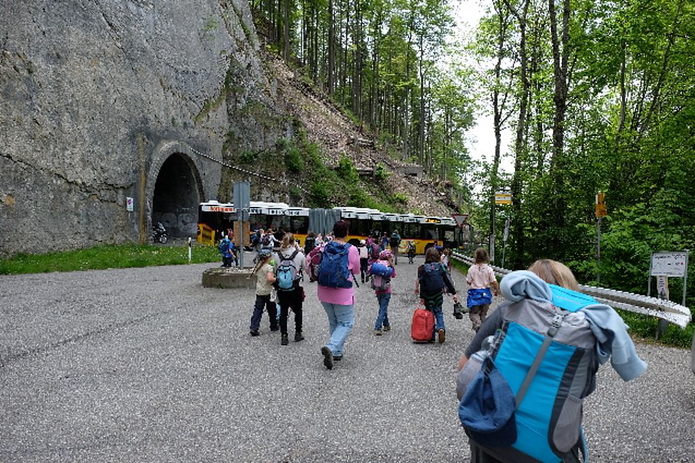 Nach einer langen Postautofahrt entliess uns der Chauffeur auf dem Passwang vor dem Tunnel. Von dort machten wir uns auf die gut einstündige Wanderung zu unserem Ziel, das Berggasthaus Obere Wechten Mümliswil. Die zu überwindenden Höhenmeter waren vor allem für die jüngeren Teilnehmer mit einem grossen Rucksack eine Herausforderung. Alle waren froh, dass es trocken war, aber auch die Sonne nicht zu heiss brannte. Die Spannung und Vorfreude auf das Kommende waren ein guter Motivationsschub.