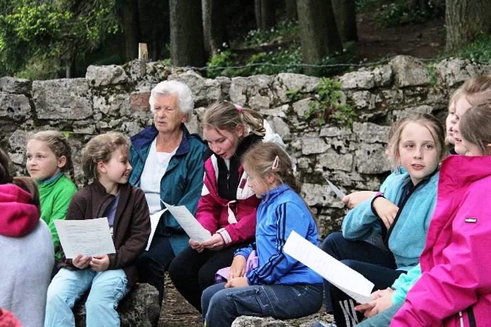 In guter Erinnerung bleibt allen sicher das gemeinsame Singen nach dem Nachtessen draussen am Lagerfeuer. Unter der Leitung von Kathrin Küng, die mit ihrem Mann und vier Kindern mit wechselnden Instrumenten den Gesang anleitete und unterstützte, erklangen manch fröhliche Melodien in den Abendhimmel. Nochmals wurde auf der Spielwiese das Tanzbein geschwungen mit Lieblingstänzen aus allen fünf Gruppen, die mit wenigen Instruktionen getanzt werden konnten.
