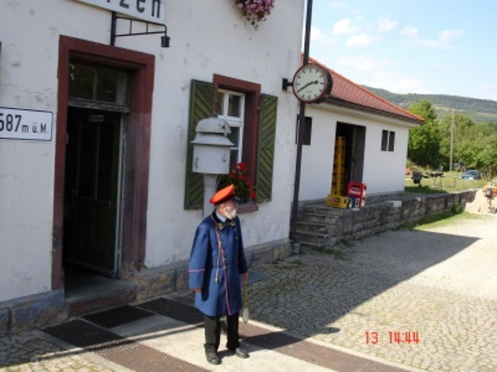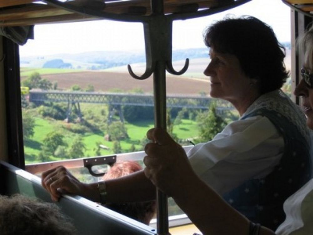 Fahrplanmässig stiegen wir in Blumberg in die „Sauschwänzlebahn“ ein. Die Dampfbahn führt auf der abwechslungsreichen Museumsbahnstrecke (25 km) über grossartige Viadukte und an idyllischen Dörfern vorbei. In alten Wagen schaukelten wir an den Bahnhöfen vorbei. Einer war sogar mit einem Bahnhofvorstand in musealer Uniform besetzt. Vieles gab es zusehen und dank dem gemächlichen Tempo wurde nichts verpasst. In Weizen war unsere romantische Fahrt nach vielen Kehrschleifen und sogar einem Kehrtunnel vorbei. Die Strecke befindet sich ganz in der Nähe der Schweizergrenze.