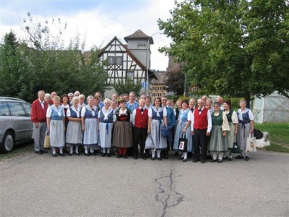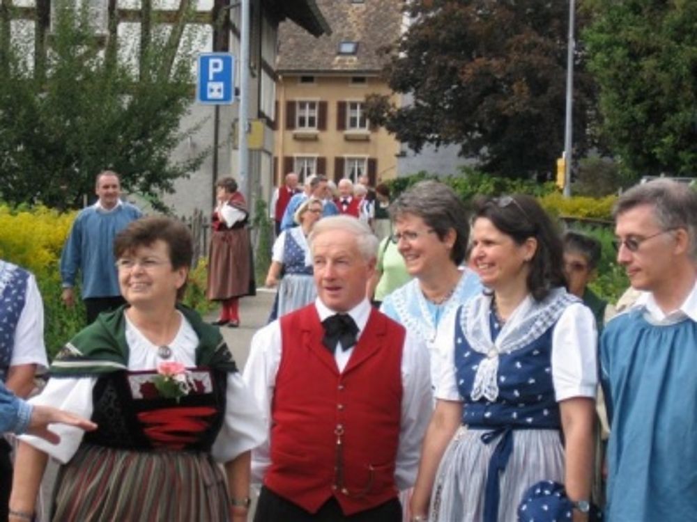 Das heisst an der Grenze zum Kanton Schaffhausen, da liegt das bekannte Weinbaugebiet von Hallau. Über die Hochstrasse und durch imposante Rebberge erreichten wir Hallau, wo wir nochmals einen Halt machten. Wir spazierten durch das typische Weindorf und alle fanden ein angeschriebenes Haus. Man musste doch unbedingt von dem einheimischen Wein degustieren. Im Weinbaumuseum konnte man sogar Kulinarisches mit Kulturellem verbinden. Der gemütliche Halt ging schnell zu Ende und mit dem Bus fuhren wir über Land Richtung Baselbiet. Da kamen dann noch unsere Liedbüchlein zum Vorschein und mit fröhlichem Gesang liessen wir den schönen Tag ausklingen. Ein Loblied gehört unserer Reiseleiterin Gaby Schwald.