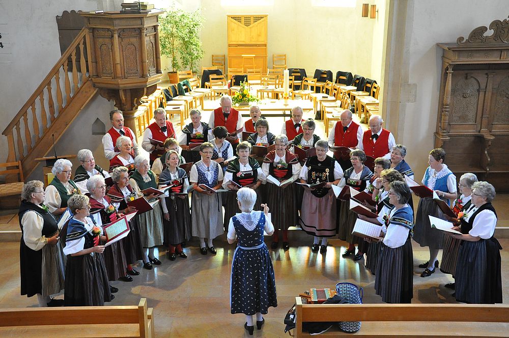 Dazwischen tanzte der Nachwuchs den „Isenburg Schottisch“ und „Muntanellas“, was den anwesenden Besucher, wie immer helle Freude bereitete. Mit „Im Wärde“, „S’Baselbiet mys Heimetländli“ und „Daheim“ rundete der Chor das Ganze ab. Die Jodlergruppe des Chors war mit ihrem Lied „Uf dr Höchi“ tatsächlich auf der Höhe.