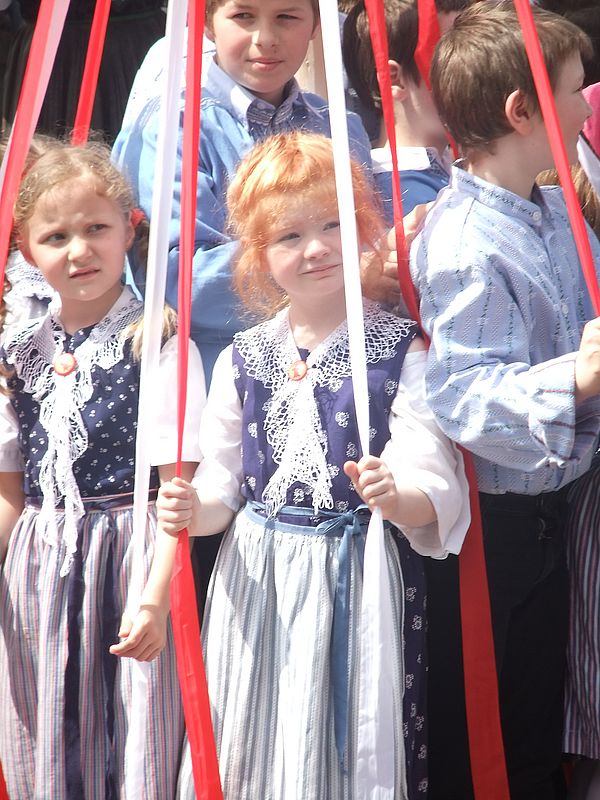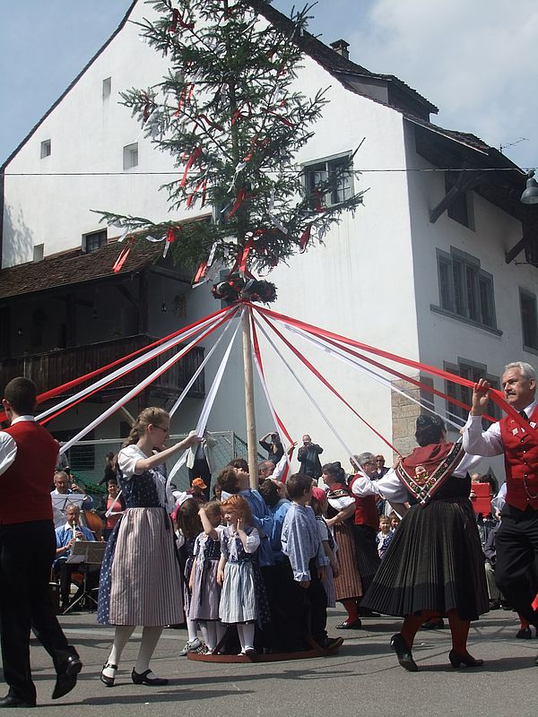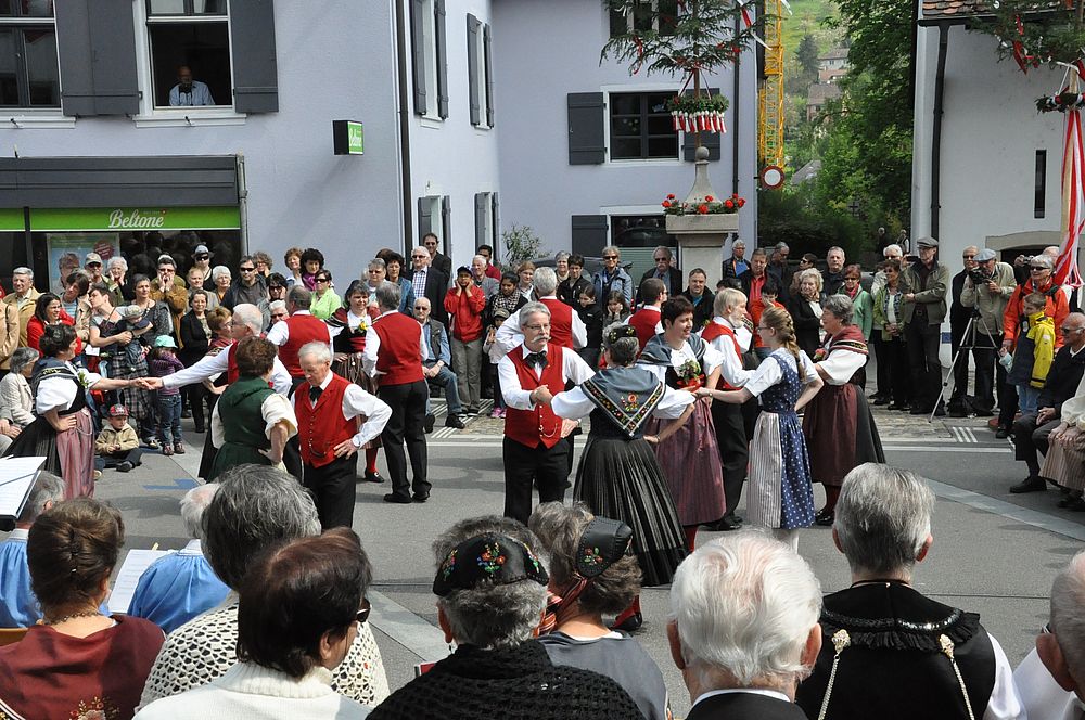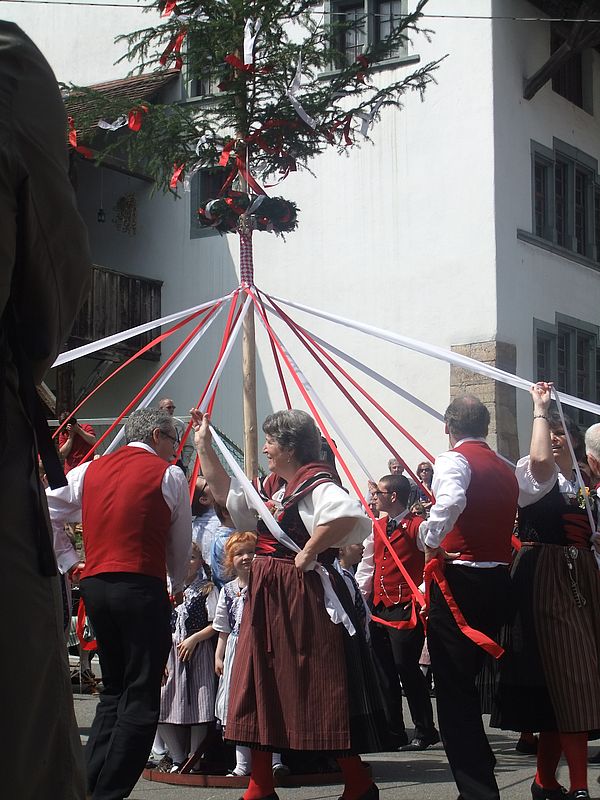 Der Bändertanz begleitet von Kapelle und Chor klappte bestens und bildete den krönenden Abschluss in der Begegnungszone.