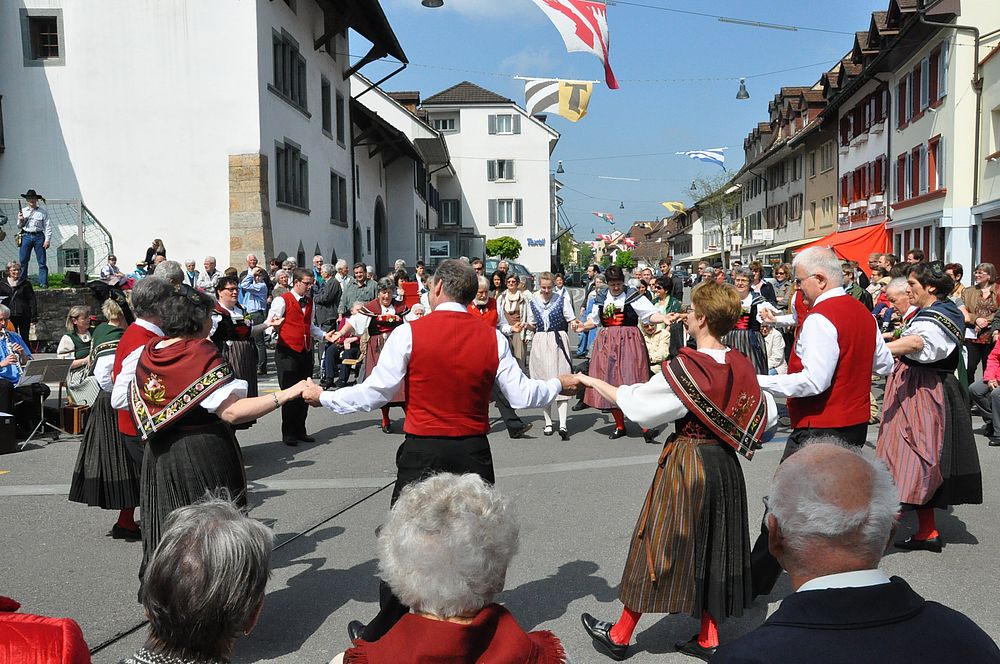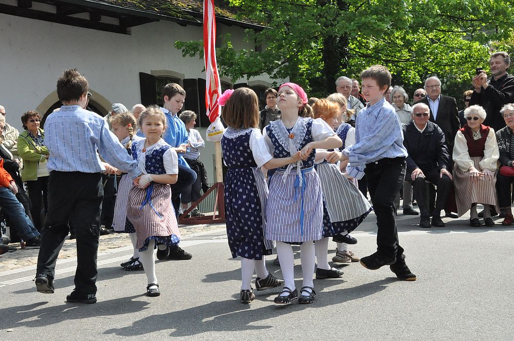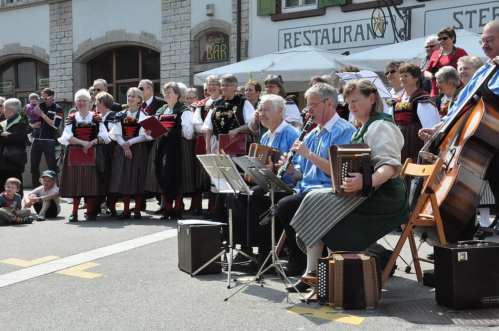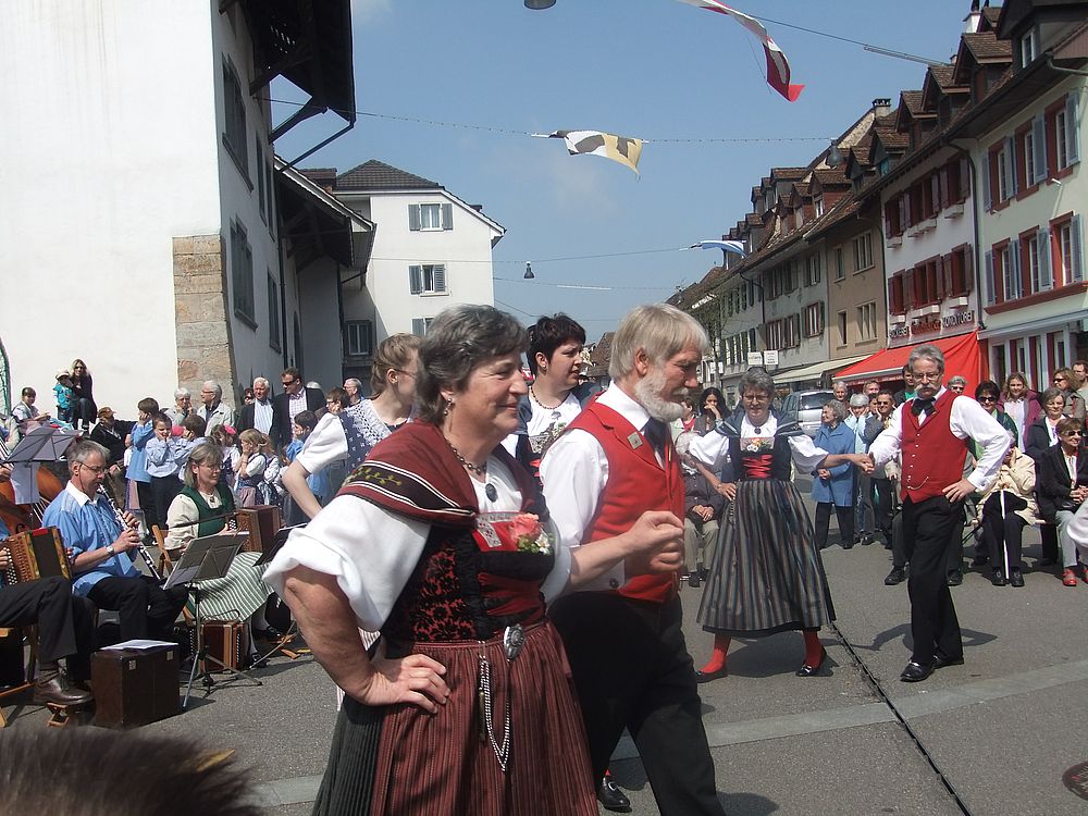 Die Tänzerinnen und Tänzer drehten sich zu „Walzer us dr Rosezyt“ und „Uf em Rossbodä“. Mit dem „Güggelwalzer“, „Vorwärtsmarsch“ und „Gygeli, Gygeli, Brotisbei“ erheiterten die Kinder das zahlreich anwesende Publikum. Leicht und beschwingt wurde in den Frühling getanzt.