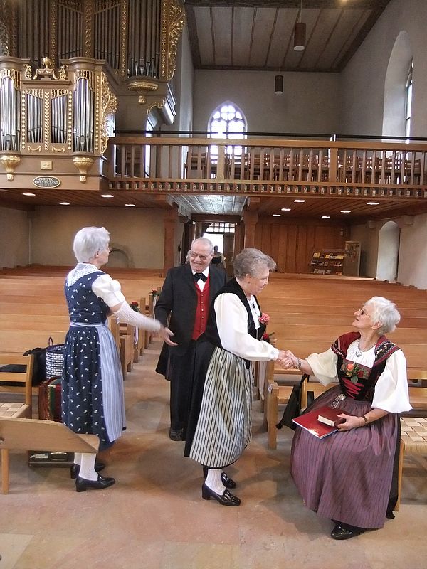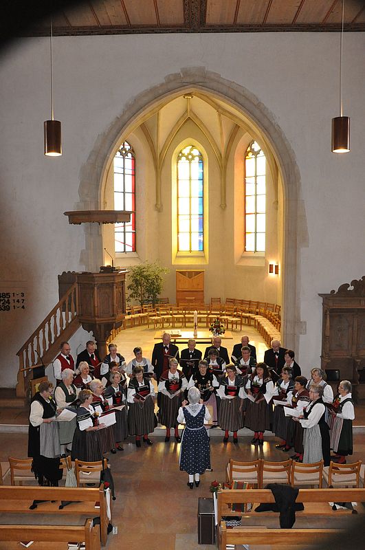 An diesem Sonntagmorgen, mit seinem Nebel, sah es nicht nach einem Maientag aus. Der Chor war trotzdem festlich gestimmt und eröffnete das Maisingen und –tanzen mit geistlichen und frühlingshaften Liedern in der Reformierten Kirche. „Juchzed und Singed“, „Du himmlische Vater“ und „Der Herr ist mein Hirte“ erklang in die gut besetzte Kirche. Das letztere Lied wurde von Pfr. Plattner für den Predigtext übernommen.
