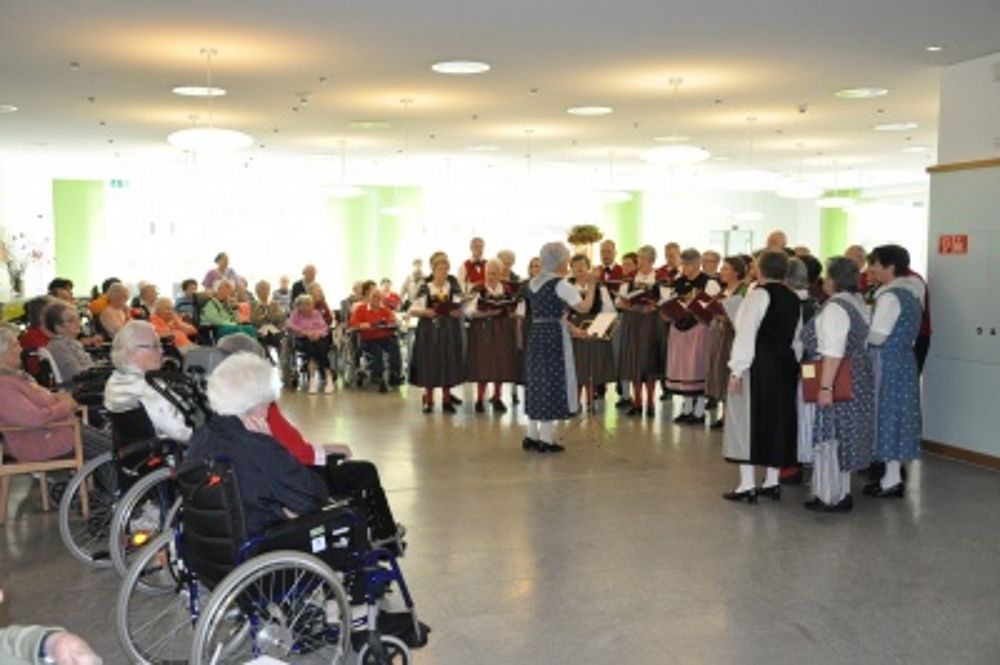 Weiter ging es im Altersheim Mülimatt, wo die Bewohner uns willkommen hiessen. Wir brachten ihnen einen Strauss Tänze und Frühlingslieder mit. So kehrte auch bei ihnen der Frühling ein. Mit einem, vom Heim offerierten, Apéro, ging der schöne Frühlingsbrauch dem Ende entgegen.