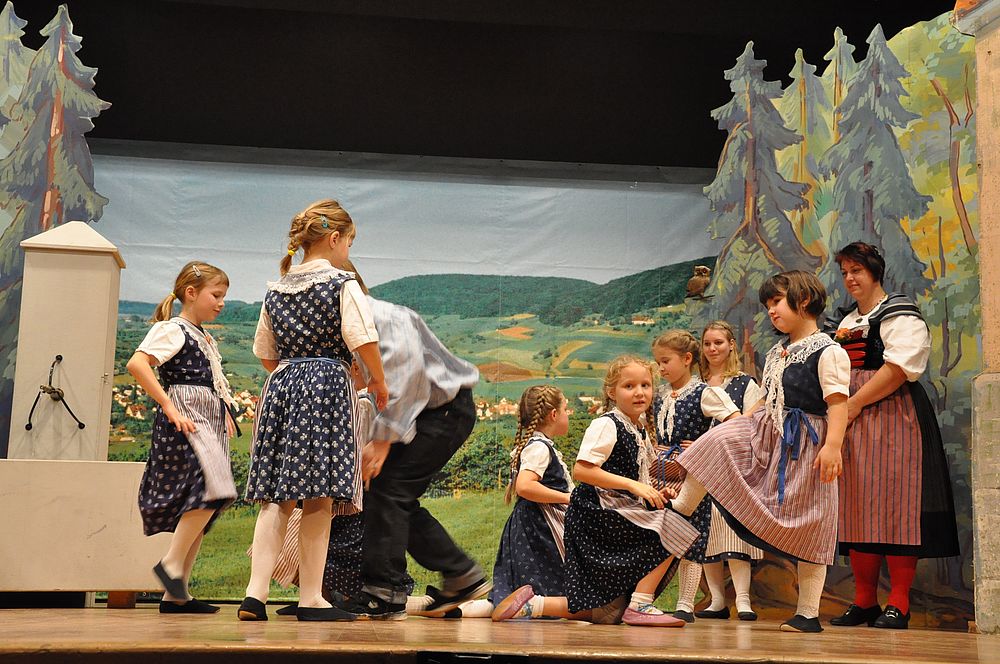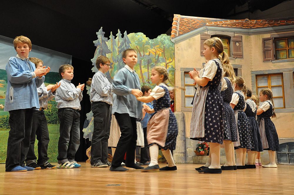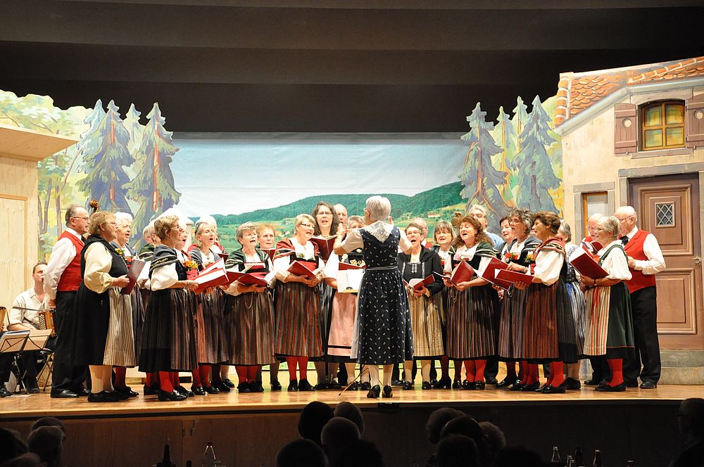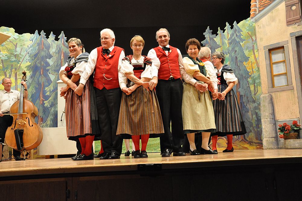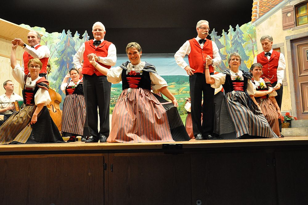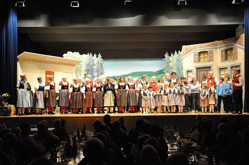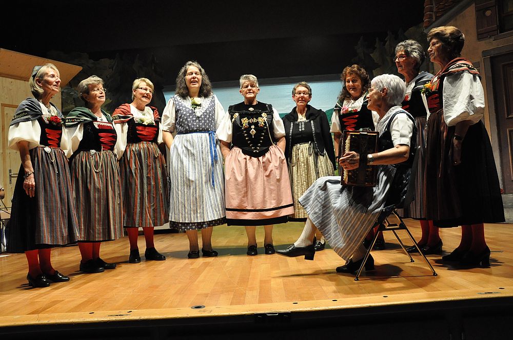 Unter der Leitung von Christine Sutter eröffneten die Jüngsten mit dem “Schueschtertanz“ das bunte Progarmm. Danach kam der Chor singend mit dem Lied “Das Wandern ist des Müllers Lust“ auf die Bühne. Die Kindertanzgruppe, die Tanzgruppe und der Chor wechselten mit ihren Darbietungen ab. “Dr Wäg uf Rüschegg“ und “Ueber d’Rhone laufe“ nahmen die Jüngsten lustig tanzend unter die Füsse. Die Erwachsenen kamen vom “Heidiland“ tanzend “Ueber d’Fritzeflueh“ auf die “Eigernordwand“ und zuletzt “Dum Gipfel engägu“. Kompetent führte die Tanzleiterin Hanni Misteli die beschwingten Tänzerinnen und Tänzer auf ihre “Gipfel“. Der Chor wanderte “An einem Sommermorgen“ und bestätigte den Auftritt mit “Chumm mir wei eis zäme singe“. Abschliessend wurde es noch ganz aktuell mit “Ach wie churze üsi Tage“. Das Jodelchörli von Catherine Hauser kam mit “Es Liedli sälb zwöit“ beim Publikum gut an. Die Dirigentin Catherine Hauser verstand es bei ihrem letzten Auftritt nochmals alles aus den Stimmen herauszuholen.