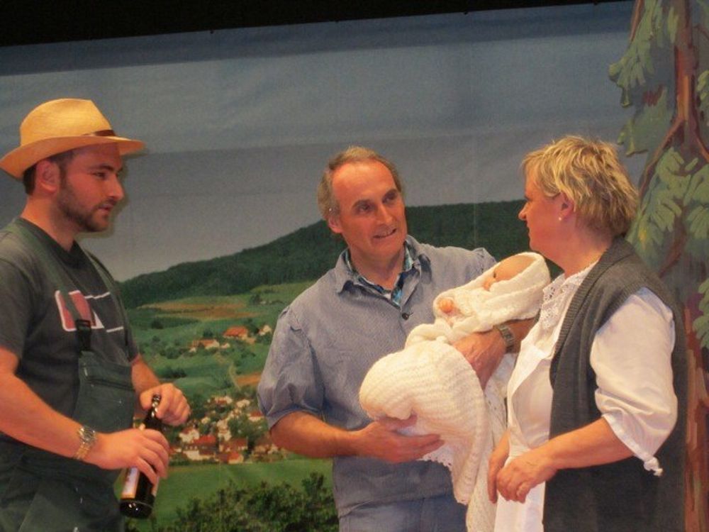 Das Verwirrspiel um eine Geburt in Haus und Stall und der Zickenkrieg zwischen der “Bisszange“ und dem “Moolchaschte“ wurden von den Darstellern prima umgesetzt. Der Pfarrer rundete das Szenario mit seinen Bibelsprüchen ab. Für den lustigen Schwank erhielten die DarstellerInnen viel Applaus.