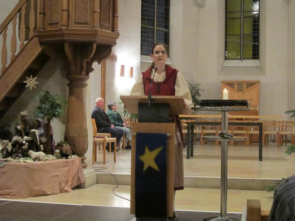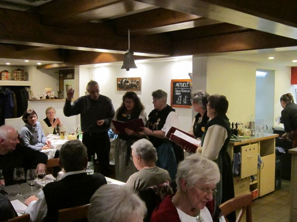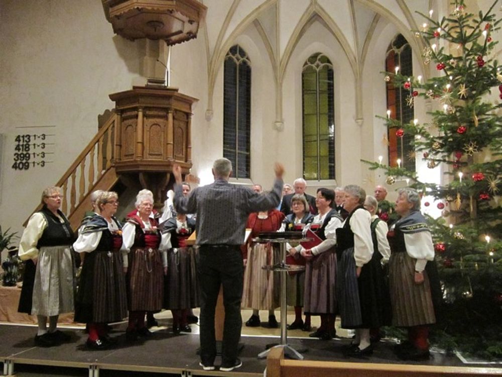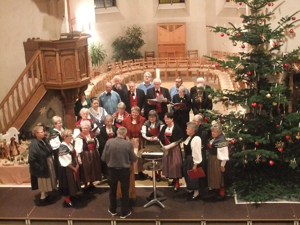 Mit den Liedern „Himmlischer Adventsjodler", "Im Stroh in der Krippe", "Oh du stille Zeit" und "Es wird schon gleich dunkel“ erfreuten die Sängerinnen und Sänger die anwesenden Gottesdienstbesucher. Die Lieder wurden wunderbar vorgetragen passend zur Weihnachtszeit. Den Gottesdienst gestalteten Pfr. Matthias Plattner und die Vikarin Evelyne Martin, welche zur Feier des Tages, in einer Baselbieter Wintertracht gekleidet die Predigt hielt. Nach dem Gottesdienst begab man sich zum Nachtessen ins Restaurant Rössli nach Itingen und damit schloss ein schönes und interessantes "Trachtenjahr".
