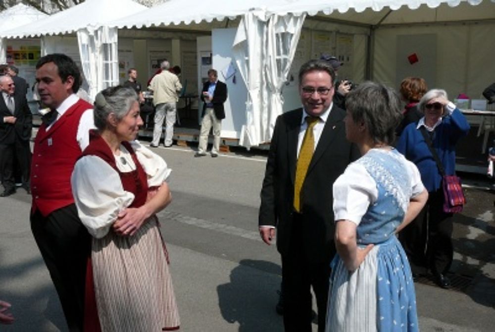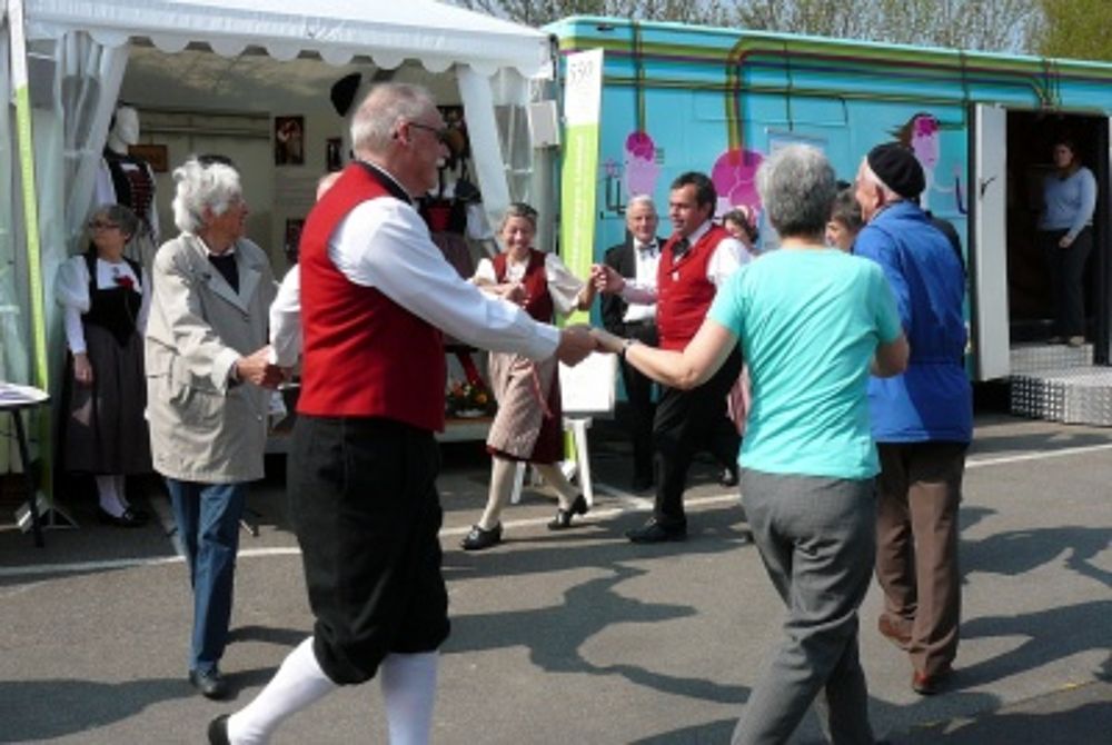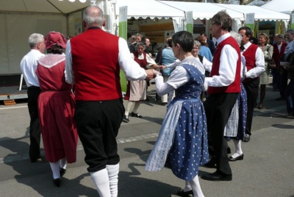 Immer zur vollen Stunde waren die Passanten zum Tanzen eingeladen. Zuerst zeigten ein paar Trachtenpaare zwei oder drei Volkstänze und animierten anschliessend die begeisterten Zuschauer zum Mitmachen einiger einfacher Tänze. Wie üblich waren Herr und Frau Schweizer eher zurückhaltend. Doch immer wieder fanden sich ein paar Mutige, die es wagten mitzumachen. Allen, die mittanzten hat es gefallen und Spass gemacht.