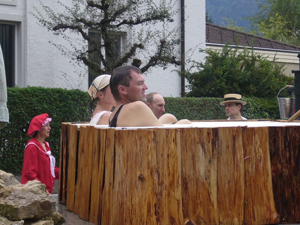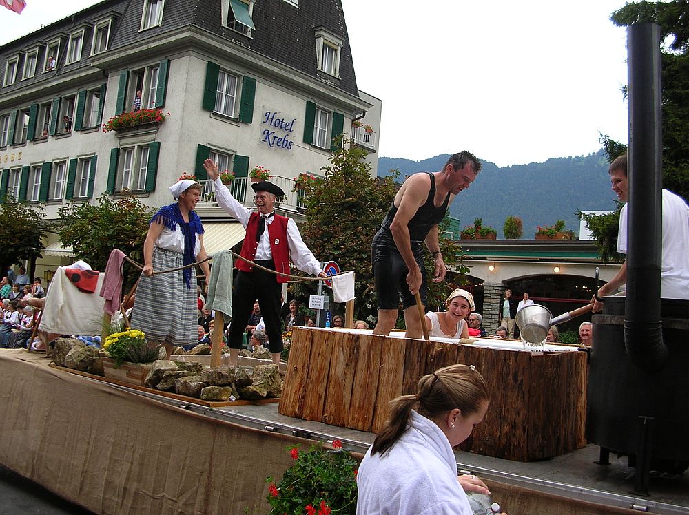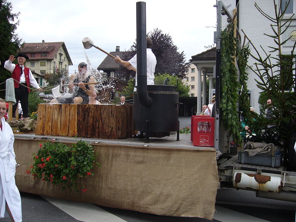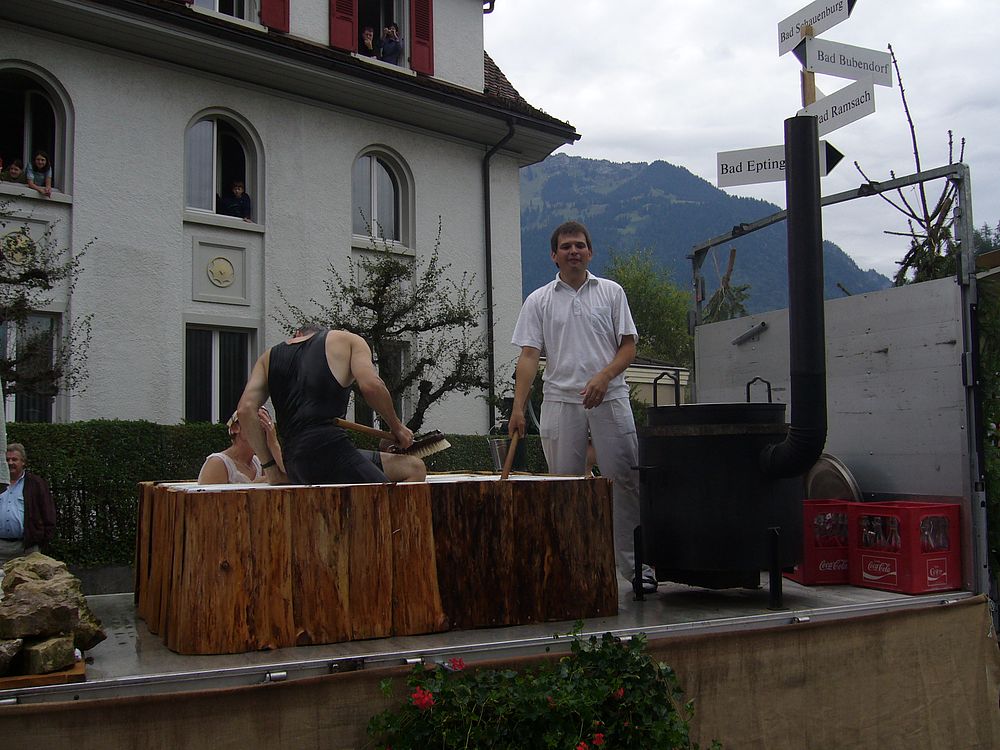 Wie wir dem Applaus der Zuschauer entnehmen konnten, fand der Wagen der ‚Baselbieter Bäderkultur’ grossen Anklang. Auch das verteilte Ramsacher Wasser wurde gerne entgegengenommen, wobei viele aber einen anderen Inhalt vermuteten…