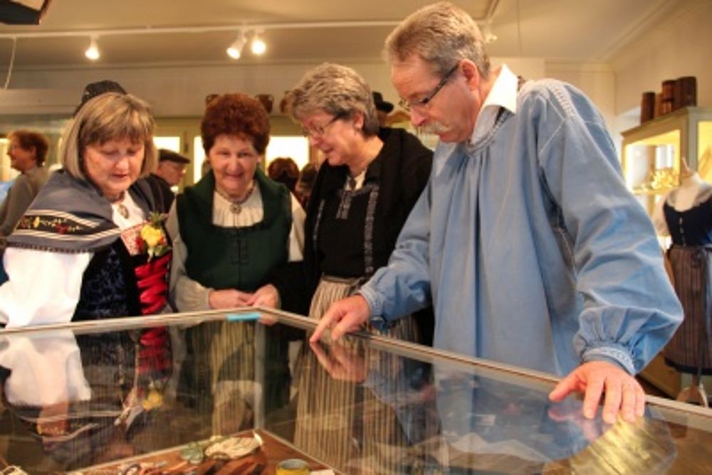 «Zu allen Anlässen kleidete man sich in Trachten», weiss Weitnauer. An Hochzeiten schmückten eine weisse Begine, ein kleiner Kopfschmuck, und ein silberner Gurt die Braut. Grundsätzlich sei Silberschmuck typisch fürs Baselbiet. Goldener Schmuck werde in den katholischen Kantonen getragen. An Werktagen habe man blaue und an Festtagen rostrote, graue oder schwarze Trachten getragen, erklärt Weitnauer anhand einiger ihrer Modelle – Trachtenträger in Miniaturform. Die Schneiderin fertigt schon seit 60 Jahren Trachten an. Und das immer noch mit der gleichen Faszination. Mit der hat sich wohl auch ihr Mann angesteckt. «Die Männer helfen den Frauen beim Anziehen», sagt dieser sichtlich stolz.