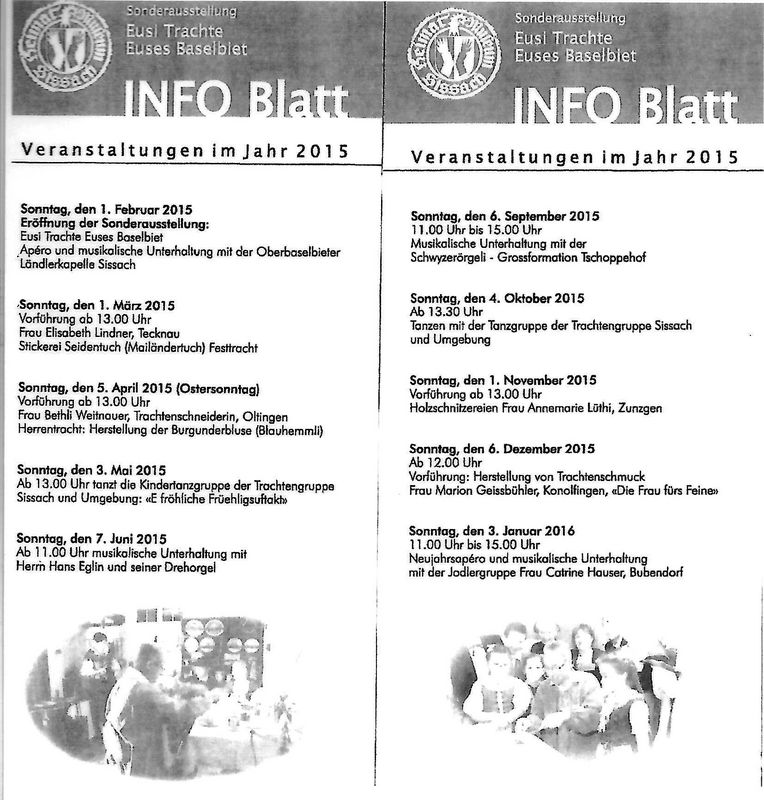 Im Heimatmuseum Sissach wurde die Ausstellung mit einem Apéro und musikalischer Unterhaltung mit der Oberbaselbieter Ländlerkapelle eröffnet.