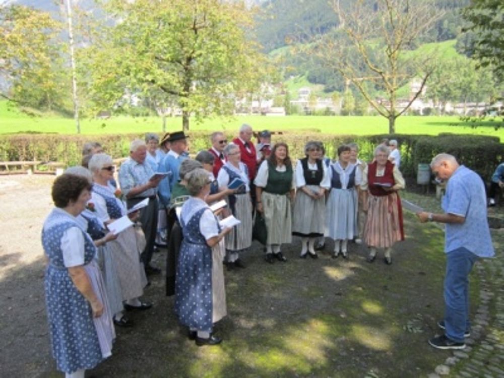 Am Sonntag, 7. September 2014, ging es auf Reisen. Unter der Leitung von Gaby Schwald fuhren wir mit der SBB ab Sissach nach Luzern. Wir bestiegen danach den alten Raddampfer „Stadt Luzern“ und begaben uns sogleich in den Speisesaal wo uns ein köstliches Mittagessen serviert wurde. Nach ca. dreistündiger Fahrt verliessen wir in Flüelen das Schiff und wanderten zum Baselbieter Platz am Weg der Schweiz, der im Reussdelta liegt. Wir konnten dabei feststellen, dass die sieben Kirschenbäume auch schon bessere Zeiten gesehen hatten. Natürlich haben wir auf dem Platz gesungen und getanzt. Ach übrigens...........das Wetter zeigte sich an diesem herrlichen Spätsommersonntag von seiner besten Seite mit plus Graden bis zu 26° Celsius.