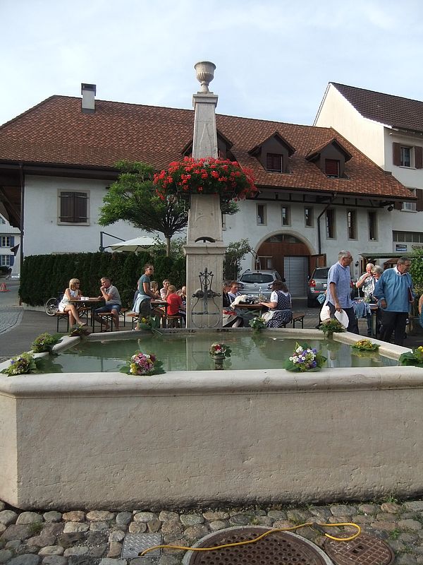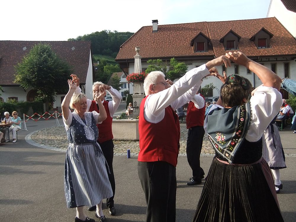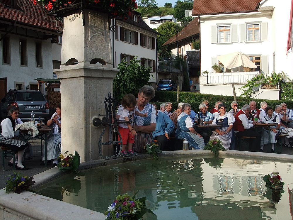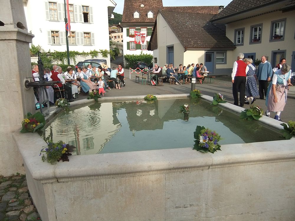 Schon zum dritten Mal durften wir in der schönen Dorfkulisse von Maisprach unsere Darbietungen zeigen. Dabei fiel besonders der mit sommerlichen Blumensträussen geschmückte Dorfbrunnen auf.