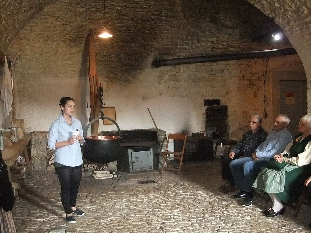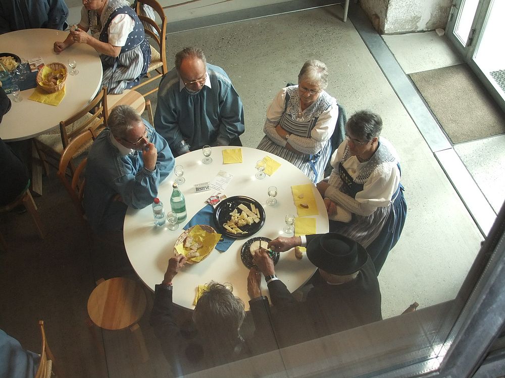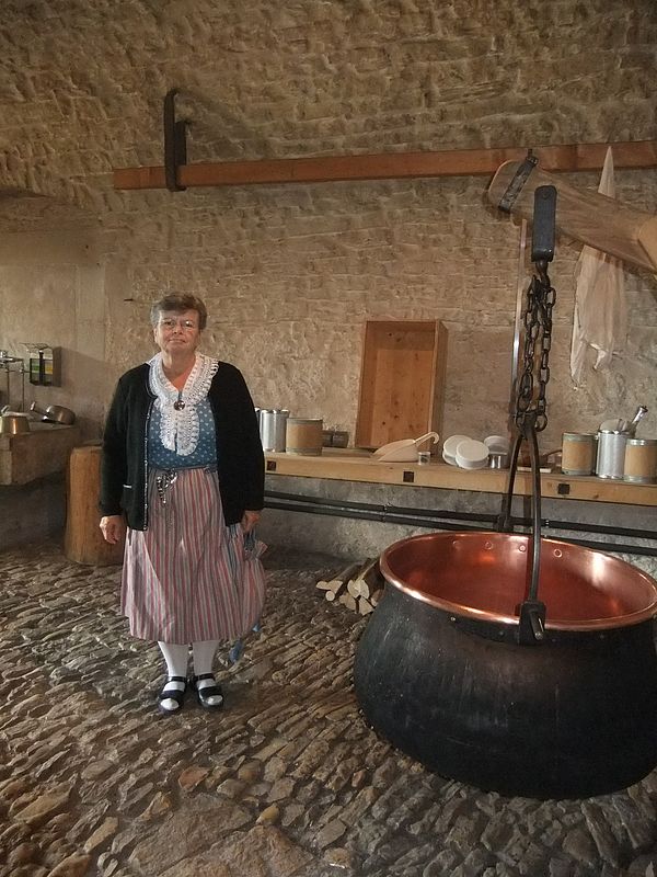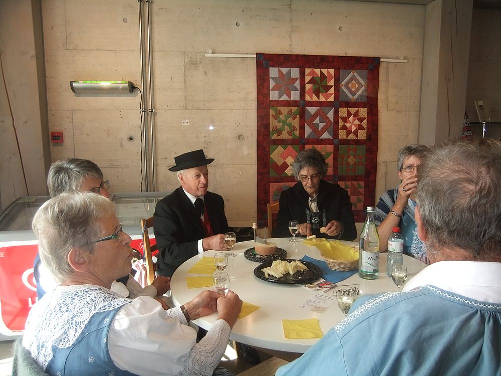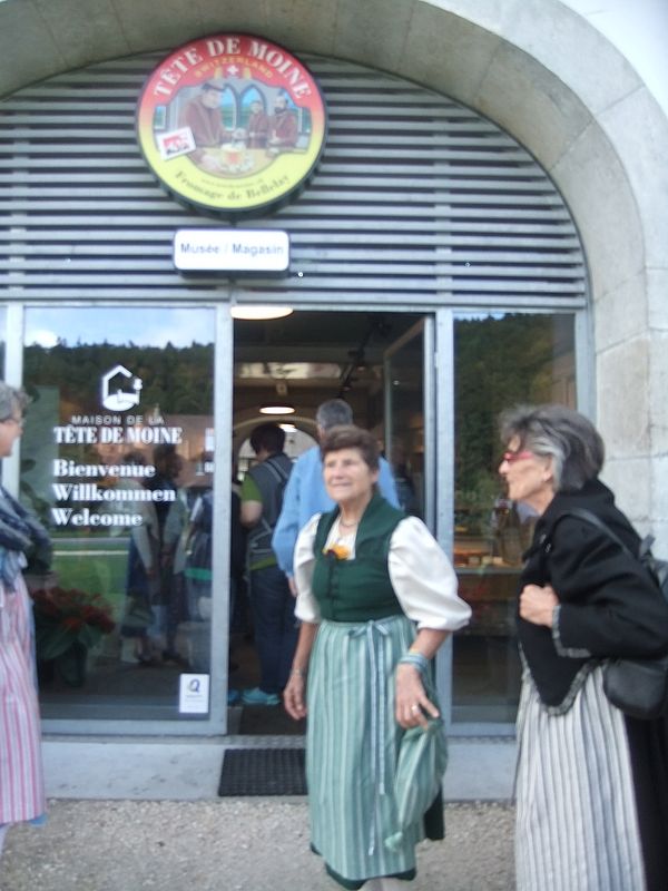 Mit dem Bus fuhren wir bei trockenem Wetter via Solothurn/Biel unserem ersten Halt im Kloster Bellelay entgegen. In einem Nebengebäude der Abtei von Bellelay wurden wir in der historischen Käserei über die Geschichte des berühmten Tête de Moine, die im Kloster begann, eingeweiht. Nach der Besichtigung des dazugehörenden Museums durften wir von dem geschmackvollen Tête de Moine, immer mit der Girolle zu feinen Rosetten geschabt, degustieren. Jeder schweizweit (weltweit) erhältliche Tête de Moine ist ein Original und stammt aus der Bergregion des Juras.
