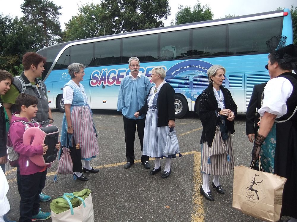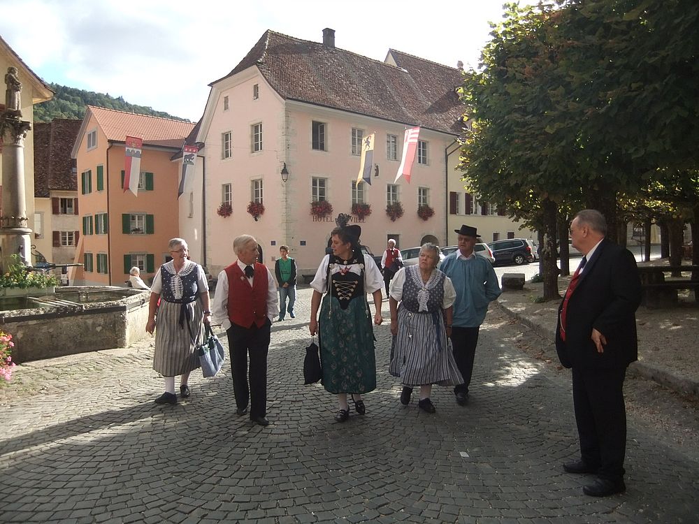 Die drohenden schwarzen Wolken vom Sonntagmorgen konnten 30 gutgelaunte Trachtenleute nicht von ihren Reiseplänen in den Jura abhalten