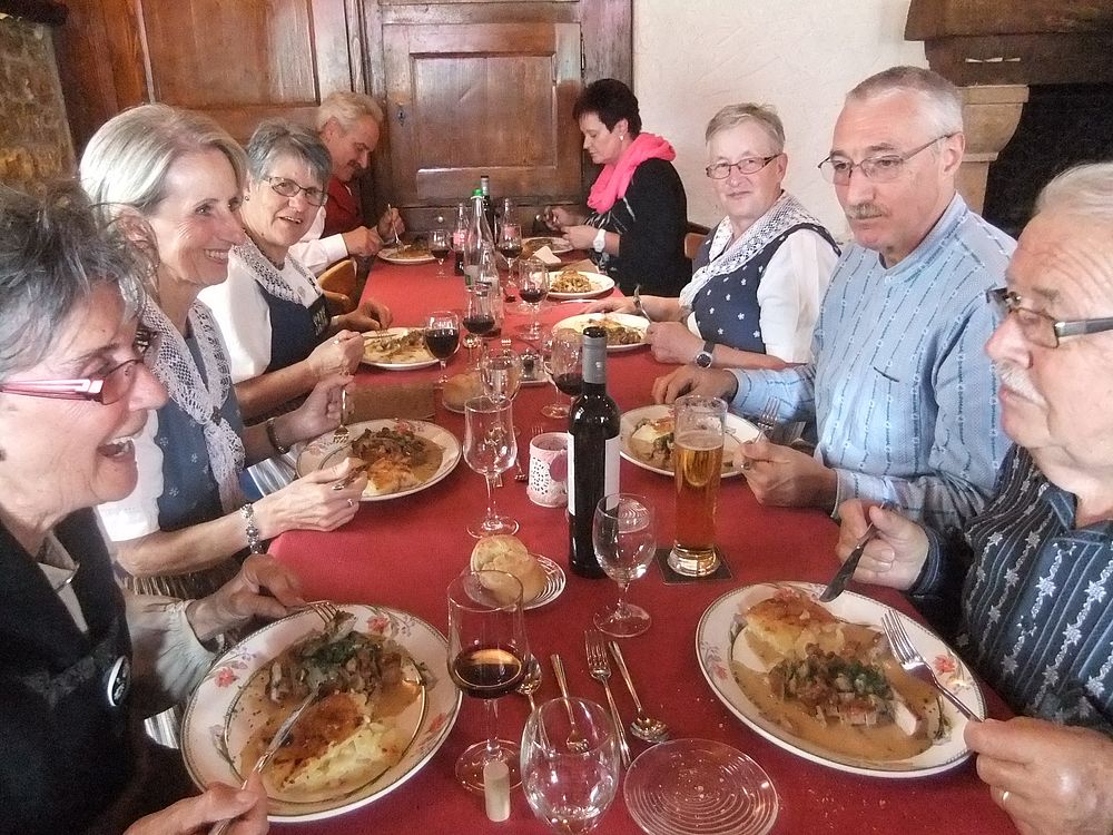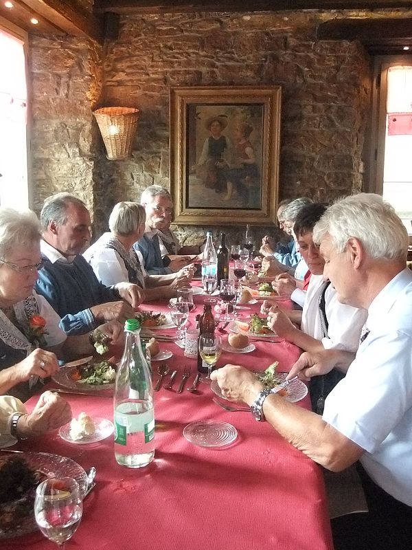 Im über 200 jährigen Gasthof Le Soleil wurden wir in einer entsprechenden „Gaststube“, ausgestattet mit einem Mühlenrad und Antiquitäten, mit einem vorzüglichen Essen verwöhnt.
