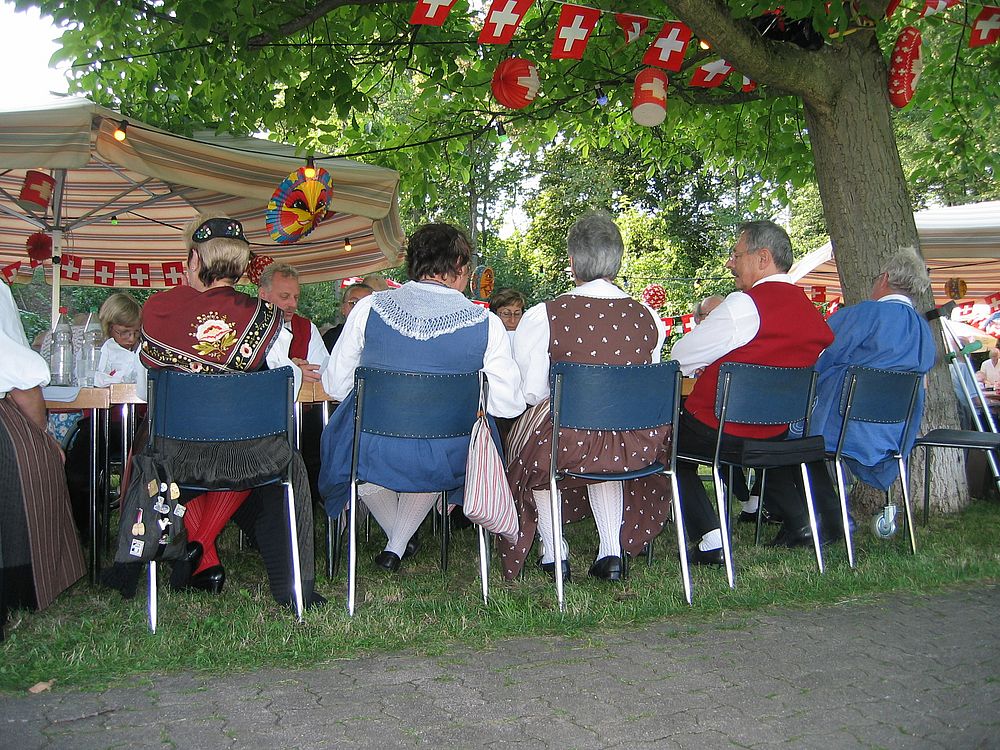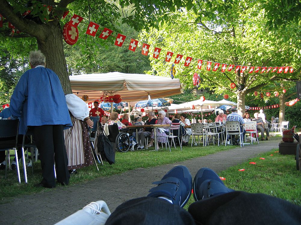 Auch dieses Jahr wieder versammelten sich die Tanzenden der TG Muttenz am späteren Nachmittag des 1. August im Alters- und Pflegeheim Hofmatt in Münchenstein, um am Programm der dortigen 1. August-Feier mitzumachen.