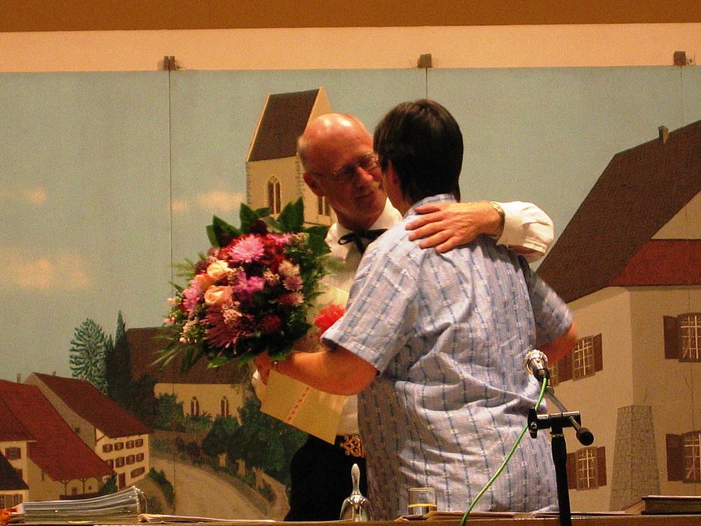 Ein spezieller Punkt war auch die Verabschiedung von Monika. Nach einem Rückblick auf ihre 10-jährige Amtszeit wurde sie mit einem Gutschein für 2 junge, hoffentlich kräftig heranwachsende Bäume für ihren (und Christoph’s) Obstgarten beschenkt, und der Ernennung zur Ehrenpräsidentin. Christian Mumenthaler konnte in Folge Abwesenheit nicht persönlich gewürdigt und mit Reisegutscheinen beschenkt werden, sein Kollege Ralf Ambühl sprang für ihn ein.