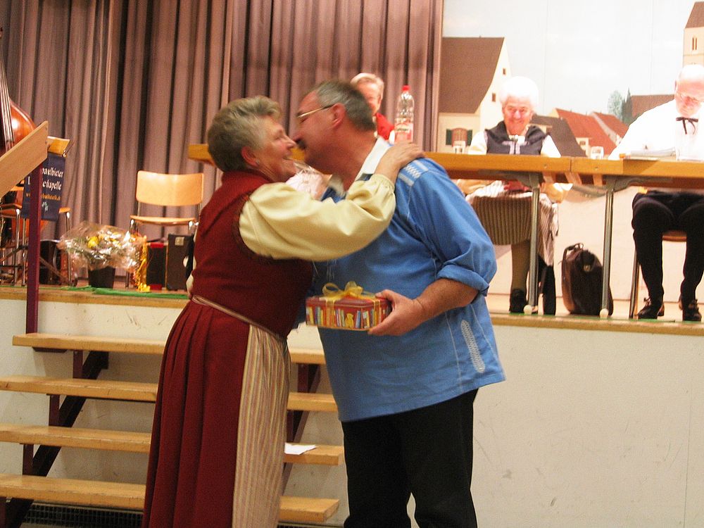 Wie immer wurden auch die diversen „Sparten“-Leiterinnen und die Revisoren für ihren Einsatz mit einem Blumenstrauss bzw. einem guten Tropfen beschenkt, und den obligaten Küsschen. Den Ausschussmitgliedern übergab Monika je eine Schachtel Mohrenköpfe, wie auch die TG Liestal zu ihrem 75-Jahr Jubiläum Mohrenköpfe erhielt, und zwar pro Jahr einen.