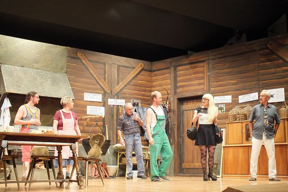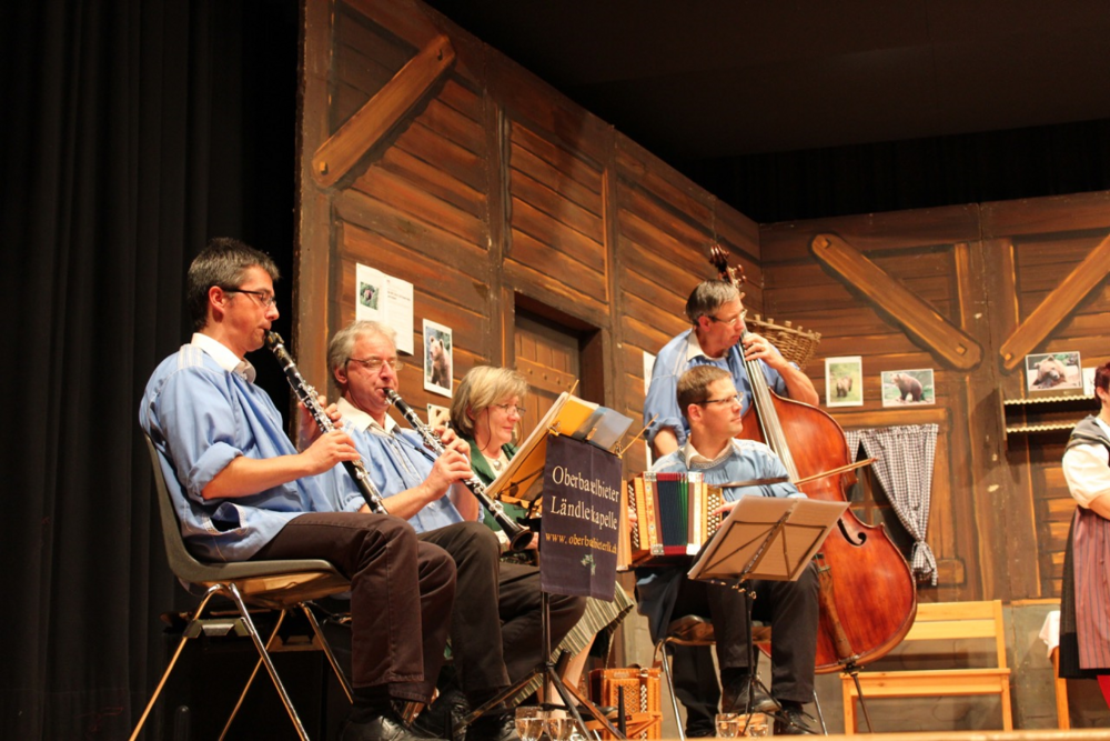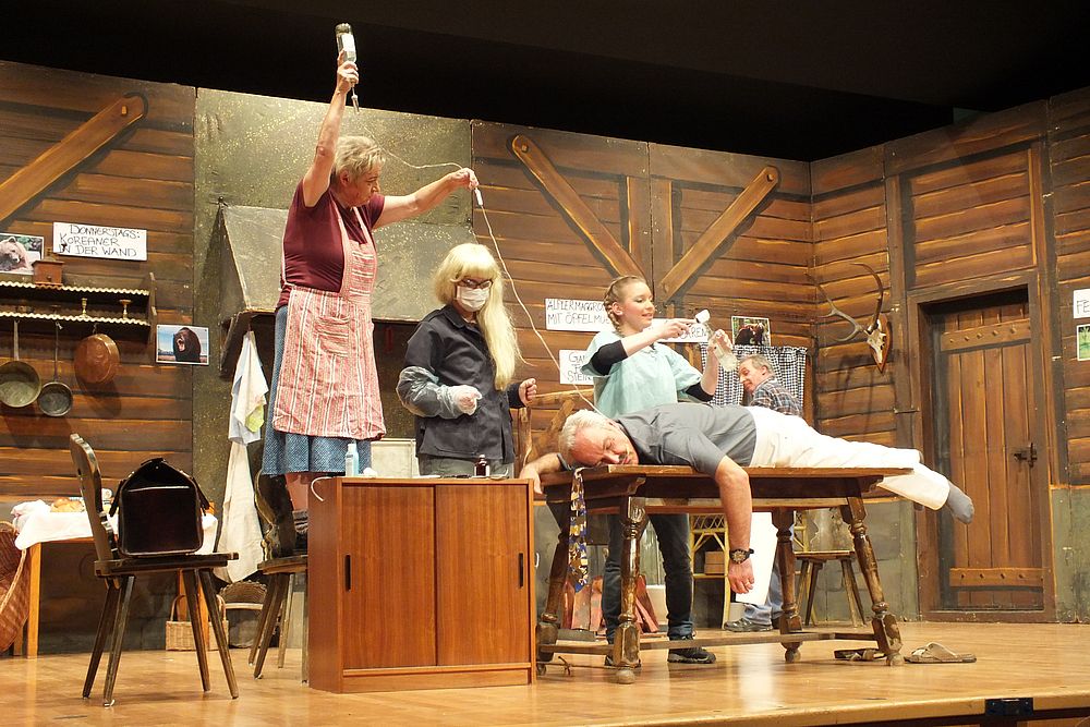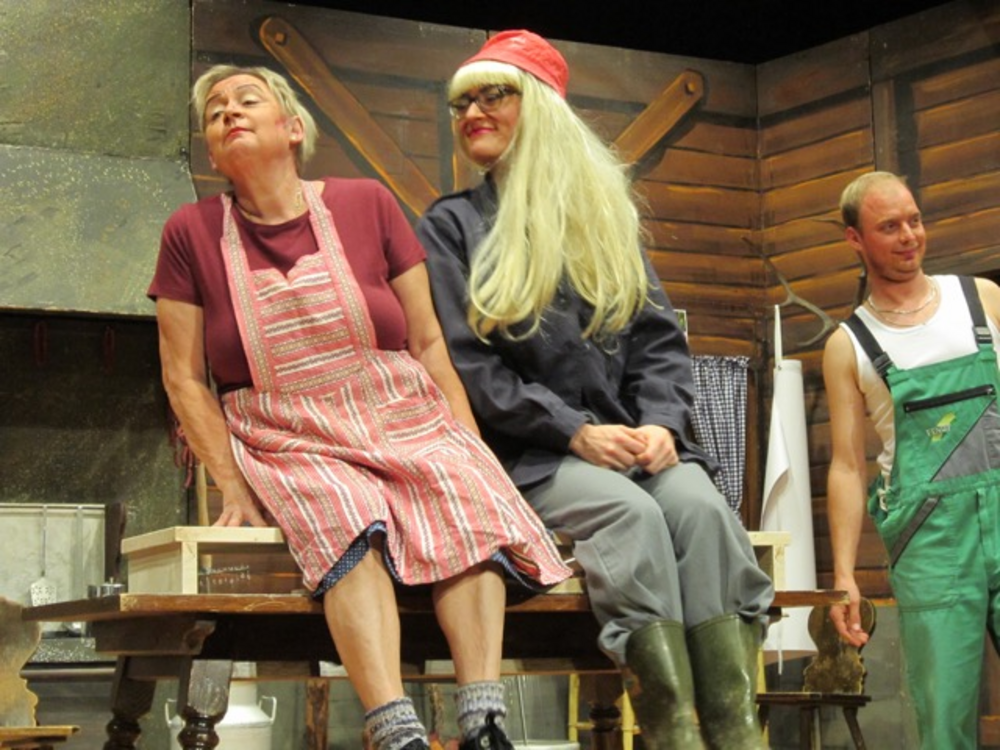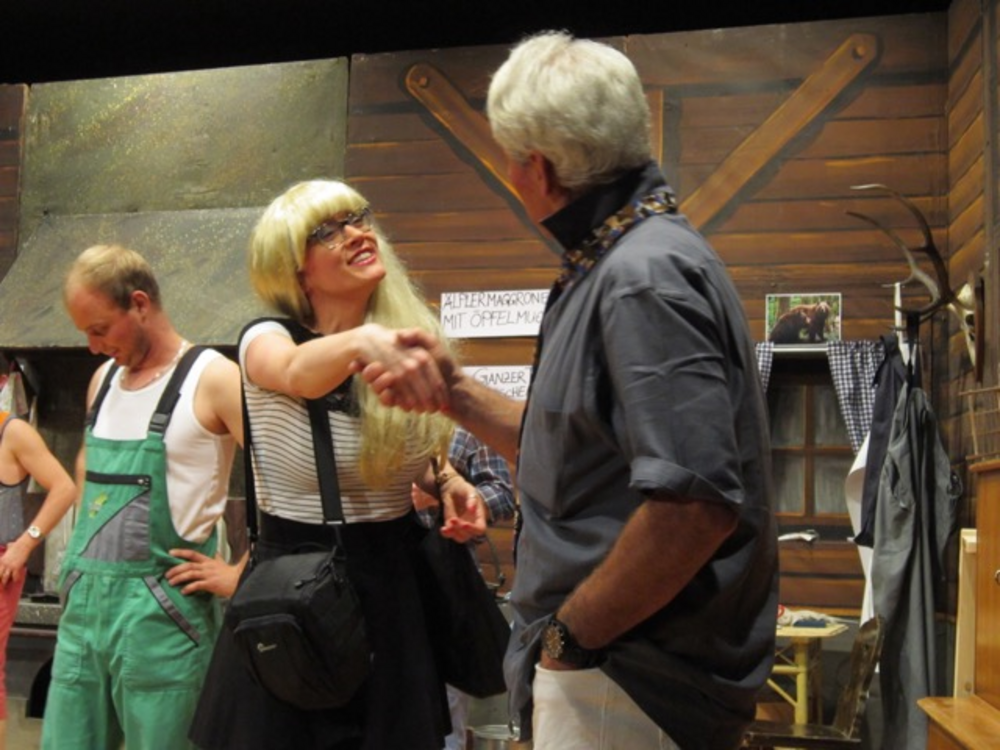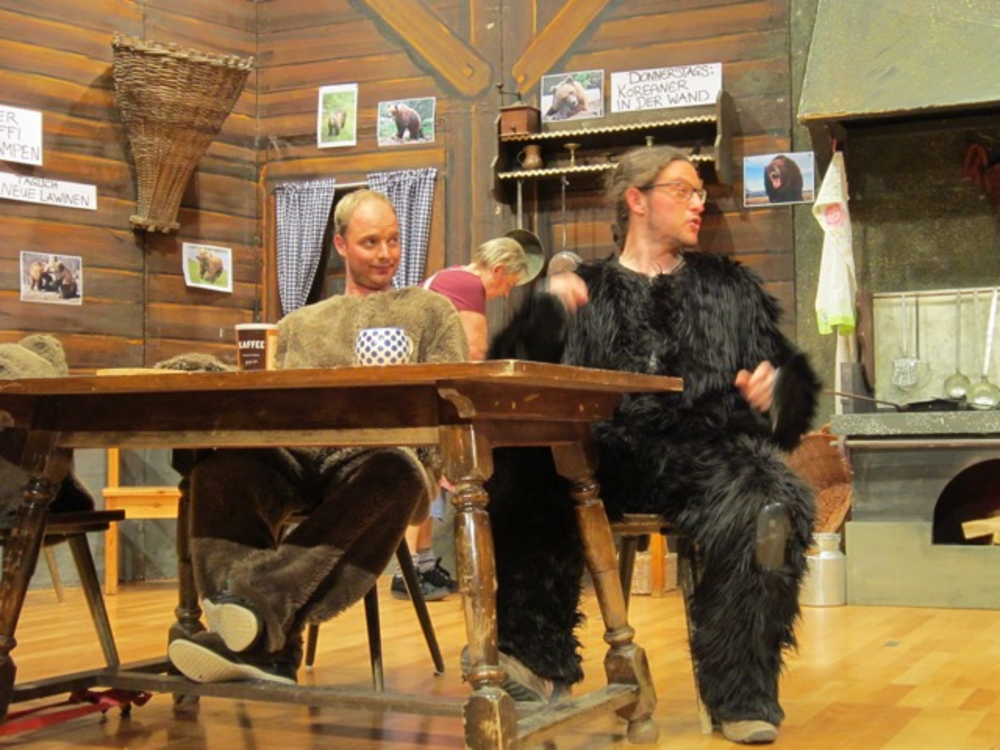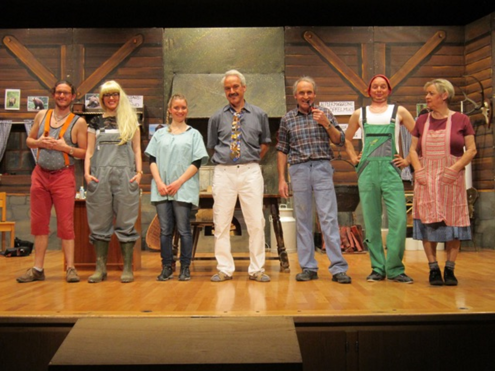 Eine urige Alphütte, Würste und Speck über dem Kamin, daneben ein grosses „Chäschessi“. So präsentierte sich das Bühnenbild. Zwei Bären, die auf der Alp herumstrolchten, ein verrückter Manager, der seine Träume von einem Event-Park auf der Alp verwirklichen wollte. Die lustige Reporterin Jacqueline, die schiessfreudige Bäuerin Fridi sowie die zwei Söhne Wisi und Bruno, brachten „Ägschen“ auf die Bühne. Älpler Bärti nahm es gelassen und rührte in seinem „Chäschessi“. Als die hübsche Tierärztin die Schrotkugel aus dem Hinterteil des Managers operierte, auf dem Küchentisch, verging diesem das Alpleben gründlich und begrub seine Pläne.