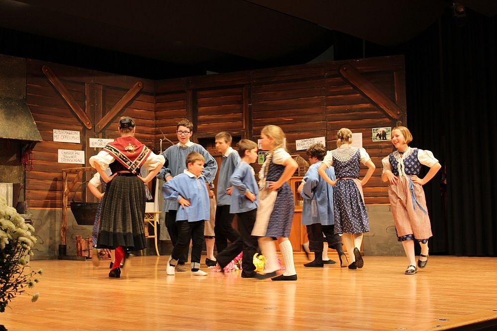 Die Kinder konnten es kaum erwarten auf die Bühne zu treten. Ihr erster Tanz hiess “z’Oberägeri am Chindertrachtefäscht“. Christine Sutter ist ihre Leiterin.