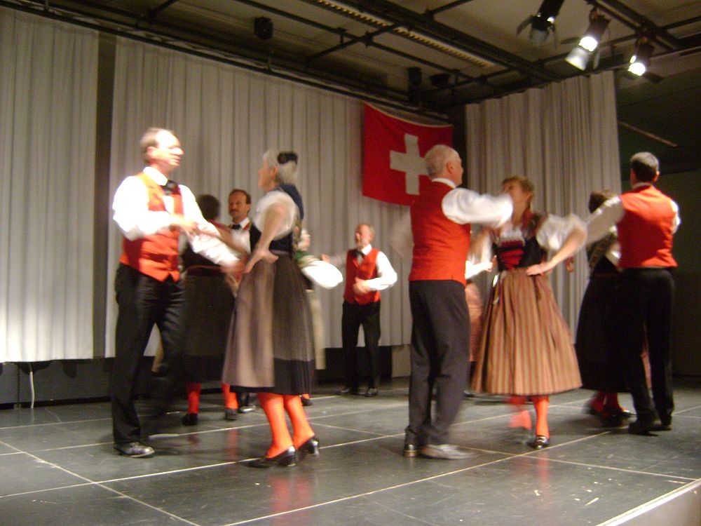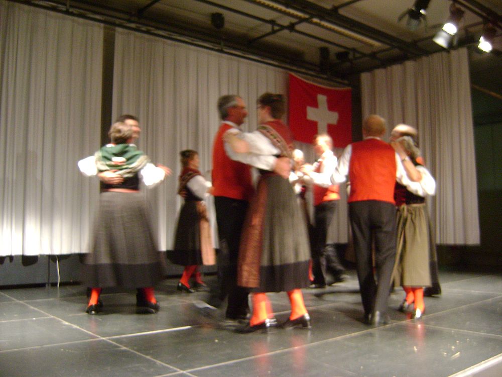 Anschliessend tanzte unsere Gruppe ein paar Schweizertänze (Bottmingerpolka, Leimentaler, Rüttimatter, Cheschtenetanz und dr Märtgässler). Die vielen Zuschauer klatschten begeistert mit und genossen unsere Darbietungen.