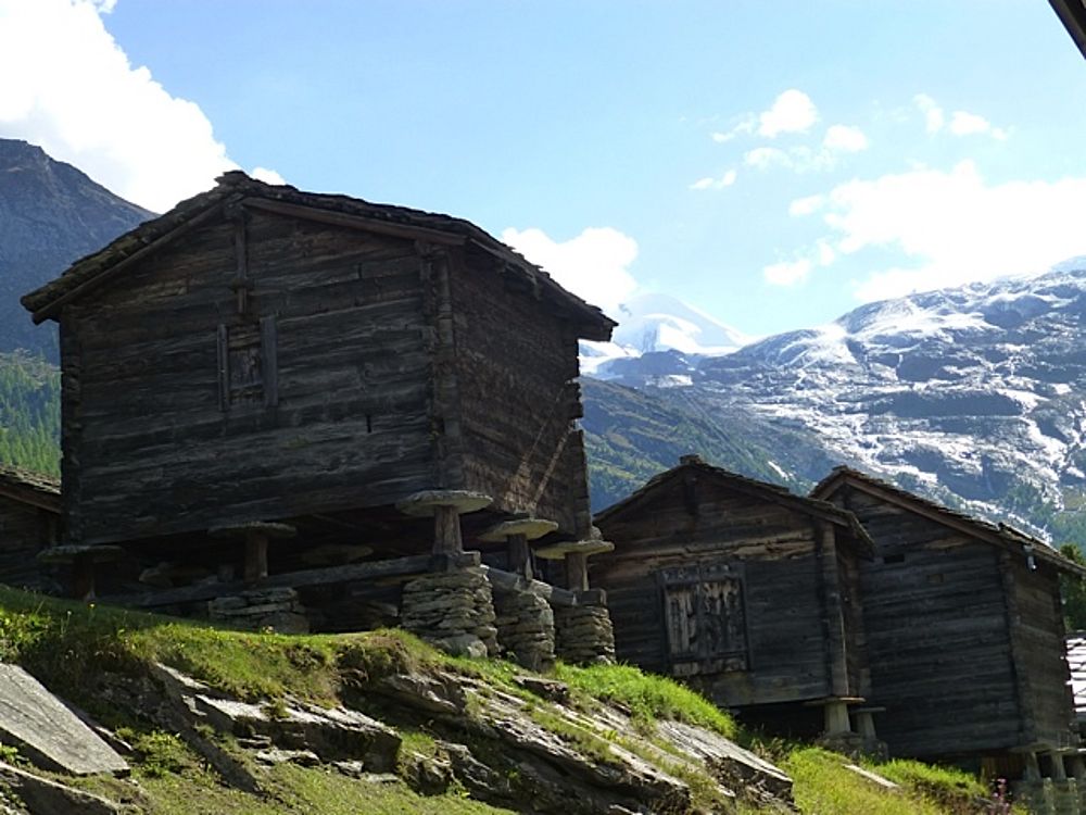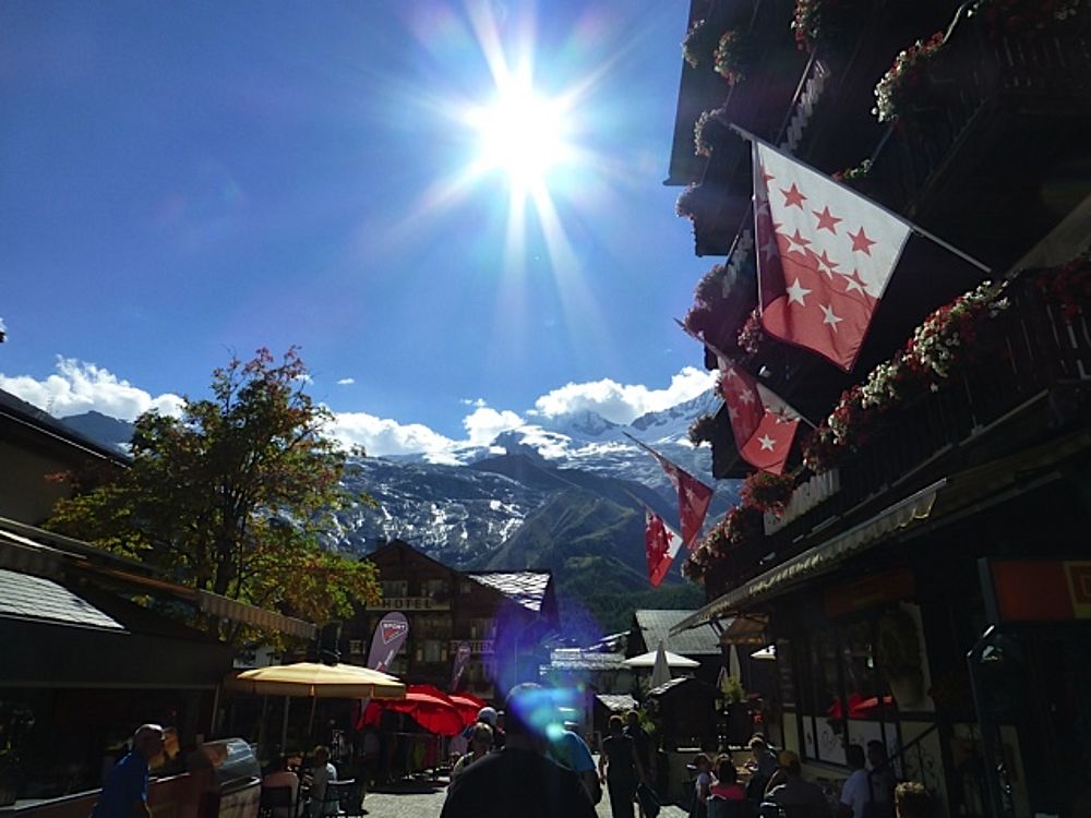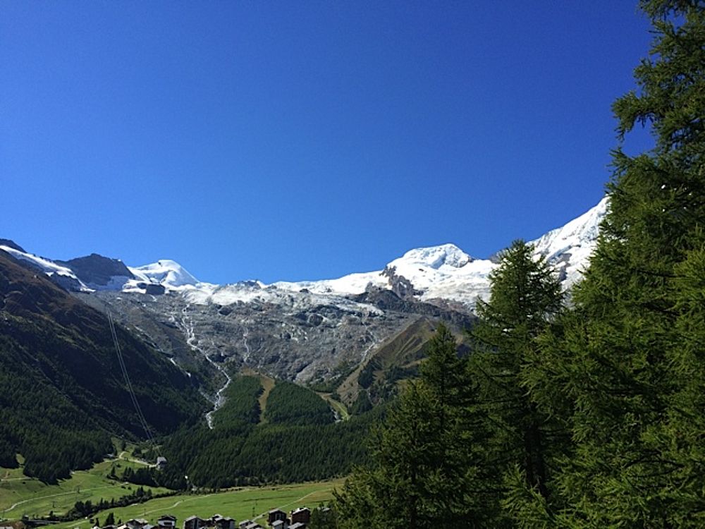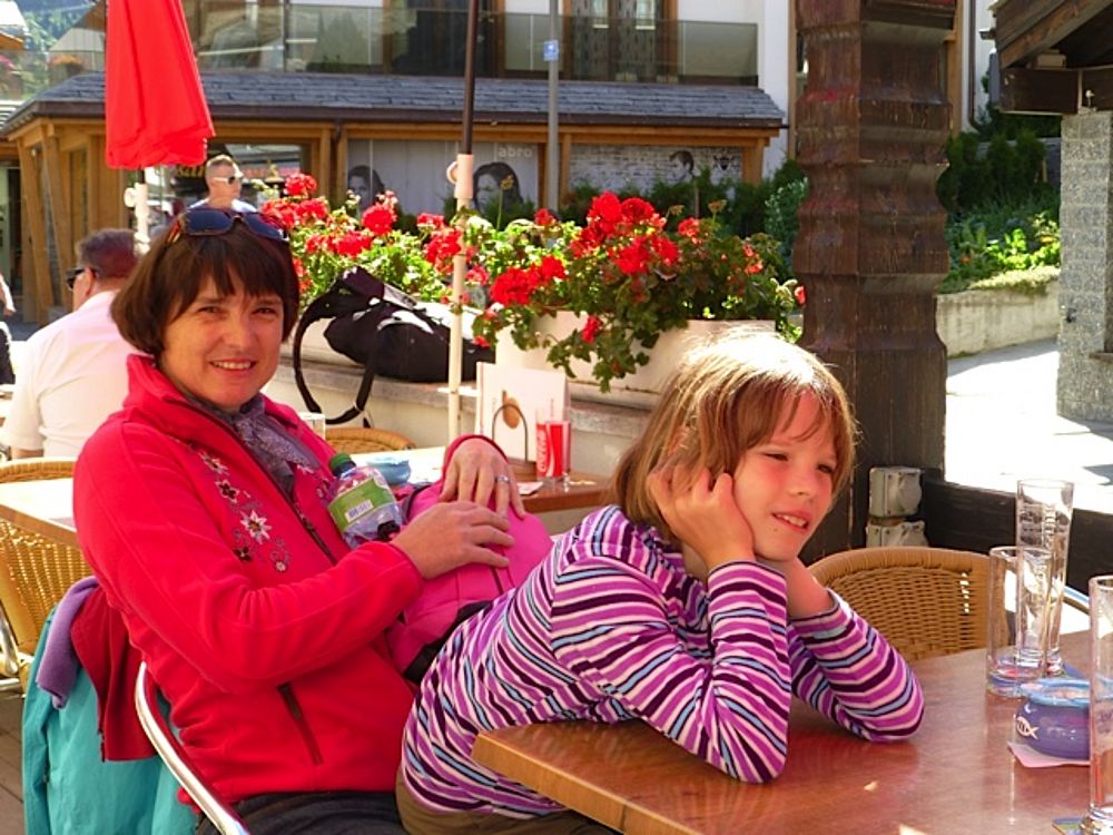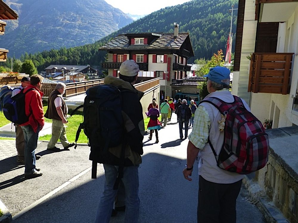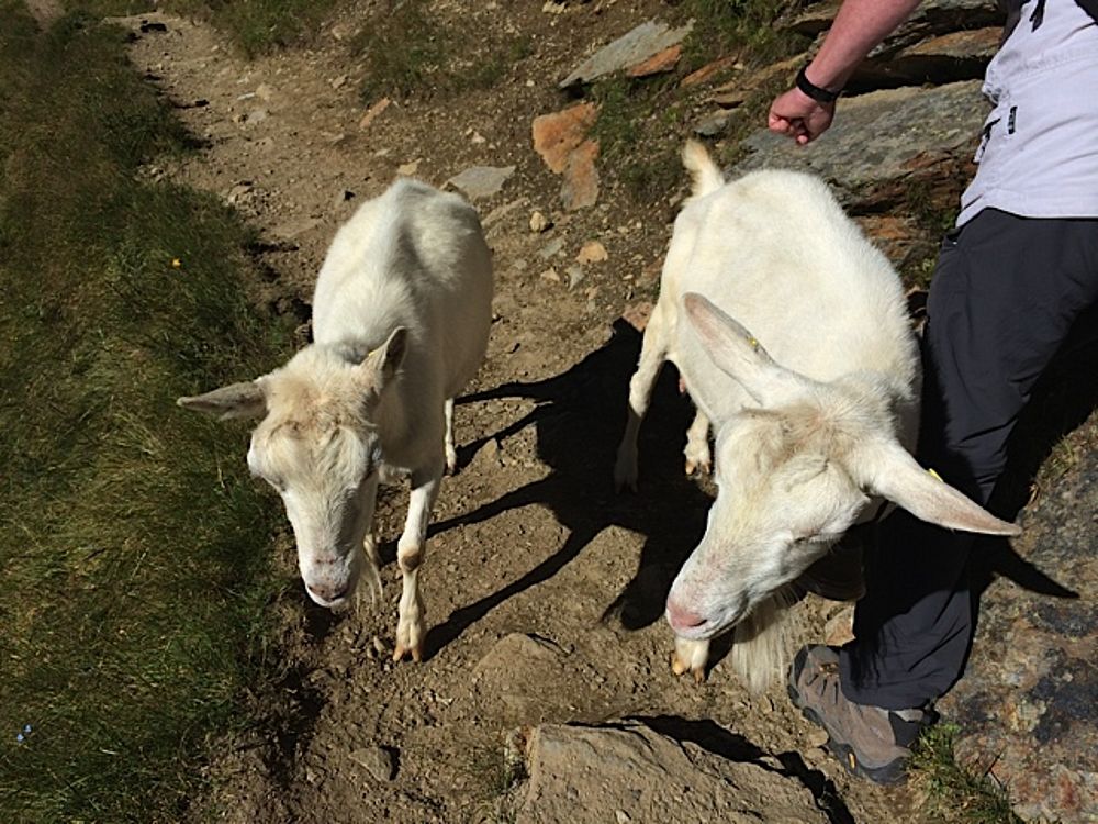 Nach der Hinreise am Vormittag mit dem Zug, wurde unser Gepäck vom hoteleigenen Elektro-Wägeli ins Hotel gefahren. Der Spaziergang quer durchs Dorf zum Hotel gab uns einen ersten Einblick in diese wunderbare Gegend. Noch vor dem Mittag ging es ein erstes Mal in die Höhe auf den Hannig ob SaasFee. Mit Sonnencrème und Sonnenbrille ausgerüstet, stand dem Zmittag nichts mehr im Weg. Der anschliessende Spaziergang zurück ins Tal war begleitet von vielen Liedern, gesungen vor allem von unserem Nachwuchs :) Ebenso hatten die vielen Geissen unterwegs grosse Freude an den Kindern - oder war es wohl umgekehrt?!? Zurück im Dorf folgte ein individueller Dorfrundgang und für einige eine kurze aber rasante Rodelbahnfahrt.
