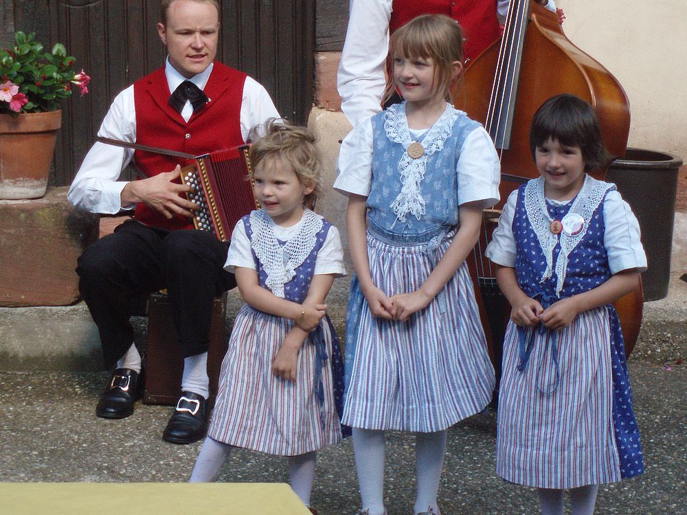 Bereits um neun Uhr trafen wir in diesem noch verschlafenen Dörfchen ein. Da noch genügend Zeit war bis zum Gottesdienst, testeten wir ein erstes Mal die Bühne auf dem Dorfplatz, indem wir uns für die zwei bevorstehenden Auftritte eintanzten. Nach dem Gottesdienst, bei dem unser Chörli ein Lied vortragen durfte, füllten sich langsam die Strassen und Plätze.