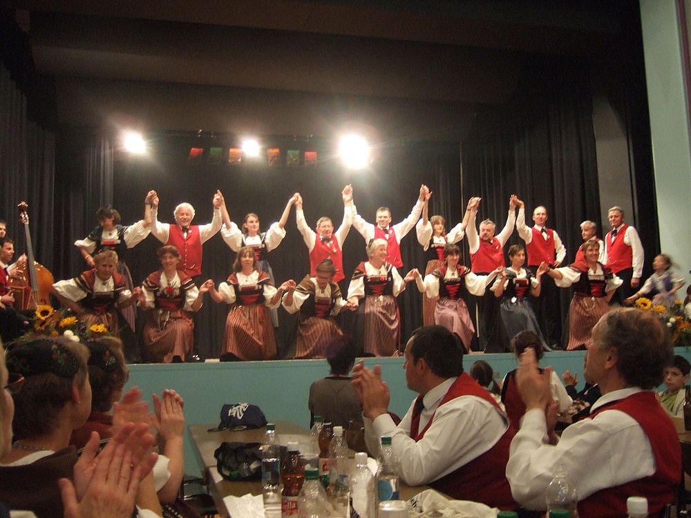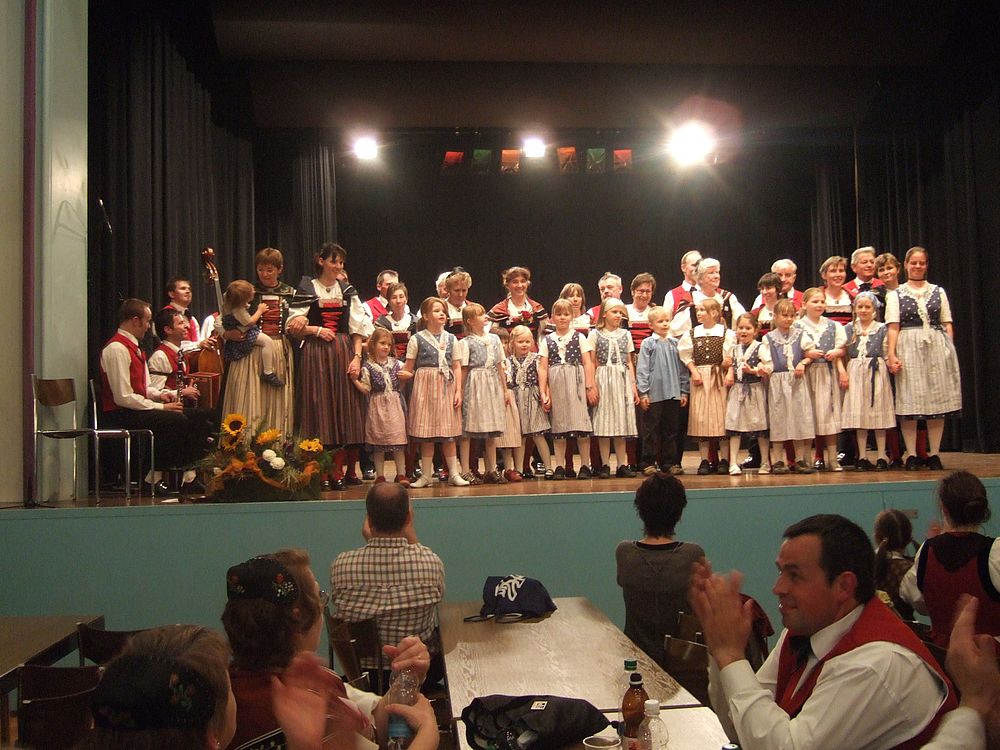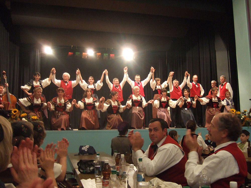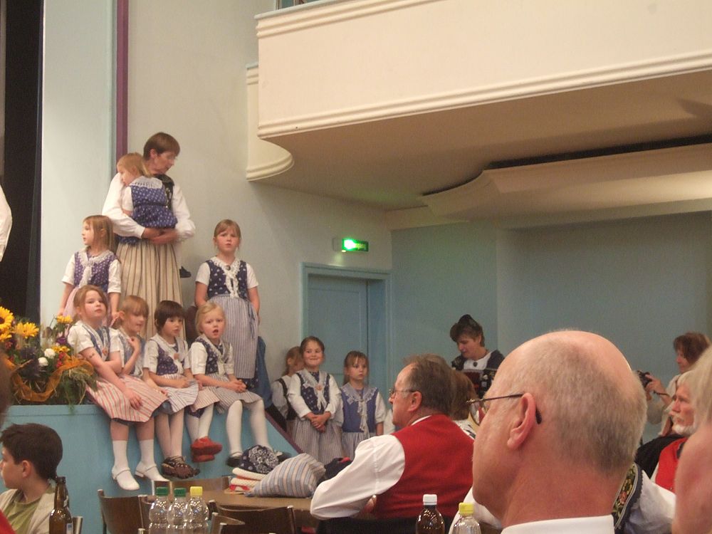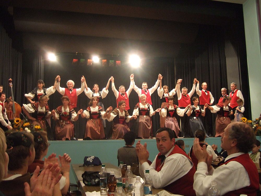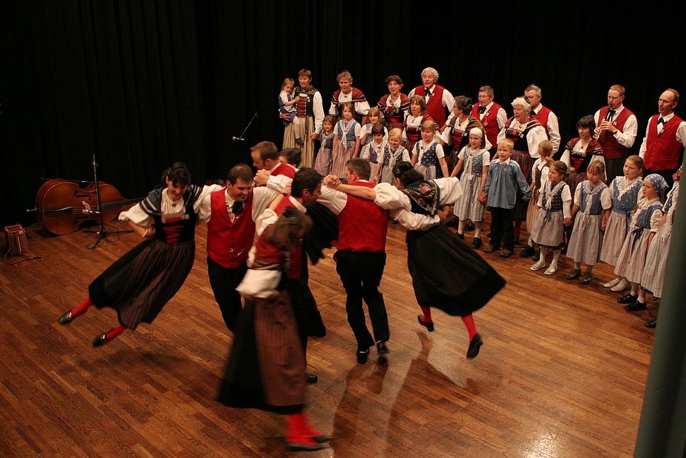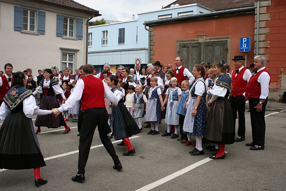 Am Samstagnachmittag traten die über zwanzig Tänzerinnen und Tänzer als letzte Formation auf der Casino-Bühne auf und setzen mit einem bunten Potpurri den Schlusspunkt der Vorführungen. Bekannte Lieder wie „Frau Stirnimaa“, „s Ramseyers wi go grase“ und „Dört äne am Bärgli“ reihten sich aneinander, dazwischen und dazu tanzten die Kinder und Erwachsenen. Christian Mumenthaler am Bass, Urs Tschan am Schwyzerörgeli sowie Ralf und Hanspeter Ambühl an den Klarinetten sorgten für die passende Livemusik. Volkstänzerin Frieda Aregger, die 1972 am ersten Eidgenössischen teilnahm, genoss die fröhliche und friedliche Stimmung: „Egal, woher man kommt, jeder redet hier mit jedem.“