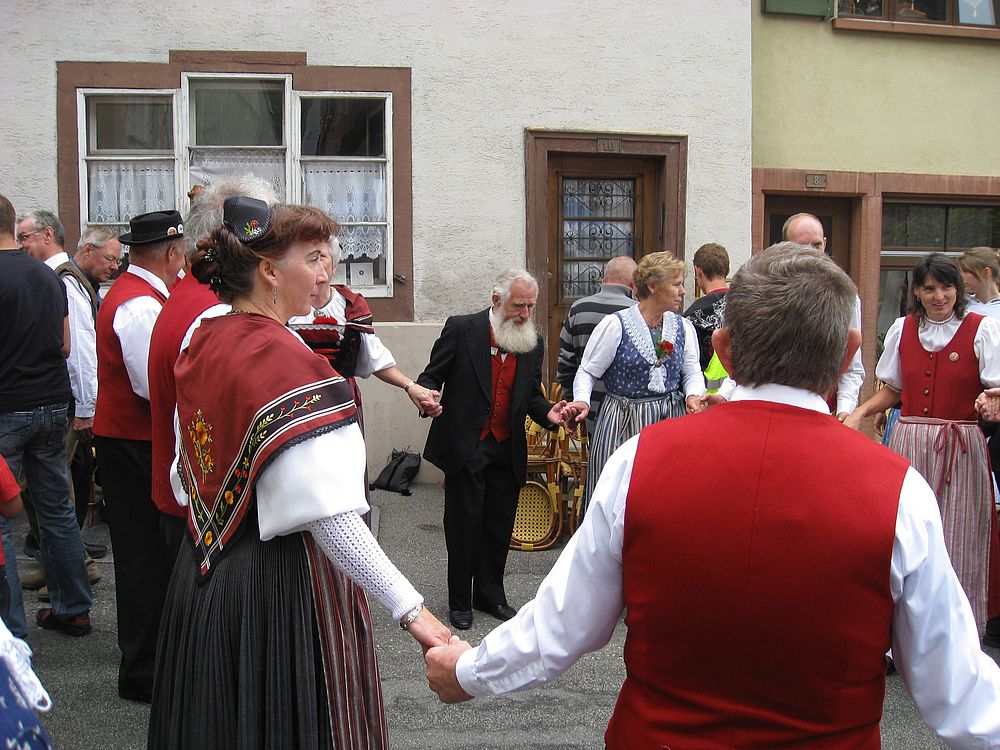 An einem engen Ort, zwischen den Gassen, hatten wir einen halbstündigen Auftritt zusammen mit der Kindertanzgruppe. Abwechslungsweise zeigten wir dem zahlreichen Publikum unser Programm. Leider waren die Platzverhältnisse ein bisschen eng, nichtsdestotrotz war es ein gelungener Auftritt.