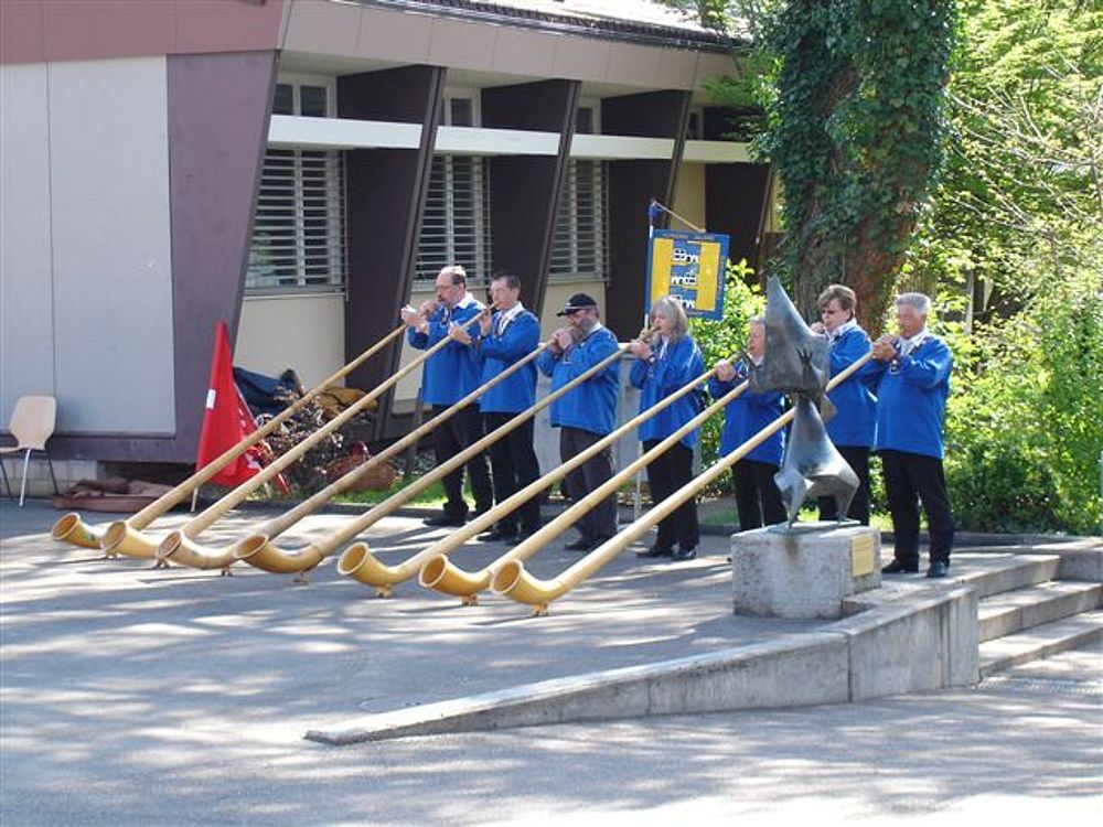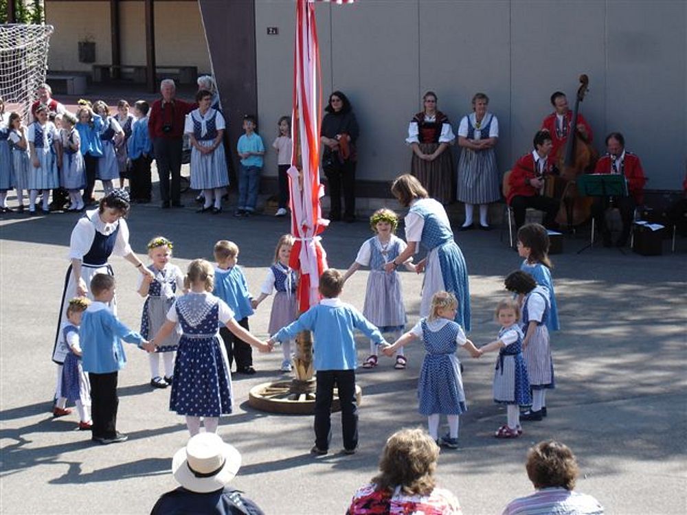 ie in den letzten Jahren, war auch diesmal schönes Wetter, was zahlreiche Zuschauer auf den Pausenplatz in Niederdorf lockte. Das Maitanzen begann mit dem Gottesdienst, welcher musikalisch vom Trachtenchörli, der Alphorngruppe Lueg ins Land und einer Delegation des Musikvereins Niederdorf umrahmt wurde.
