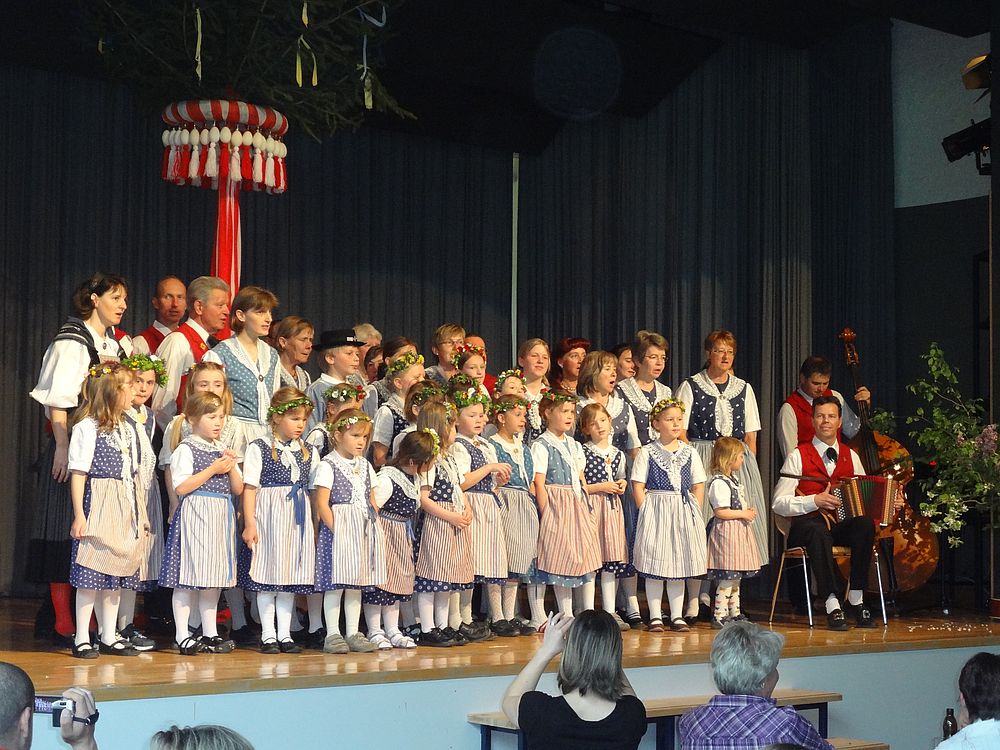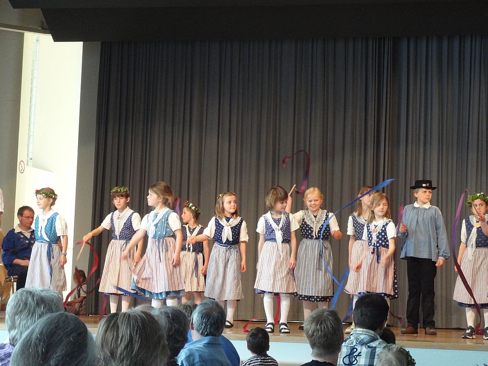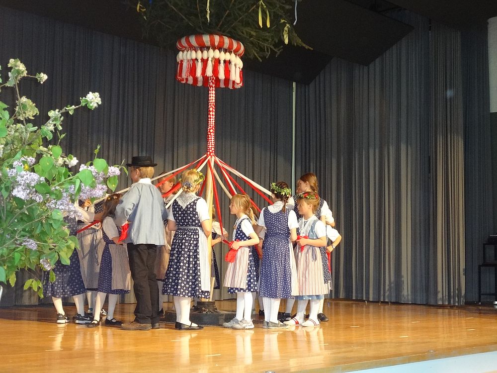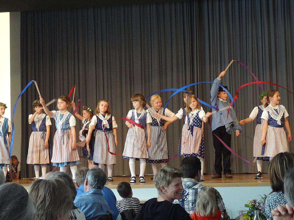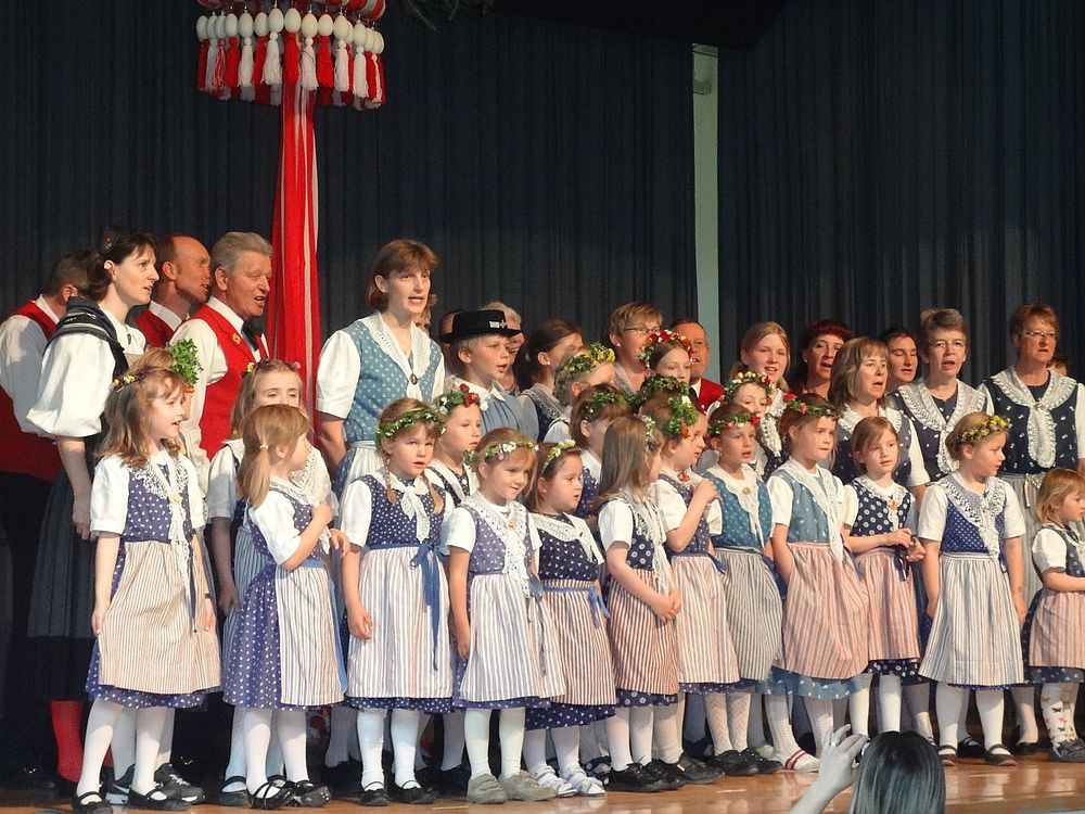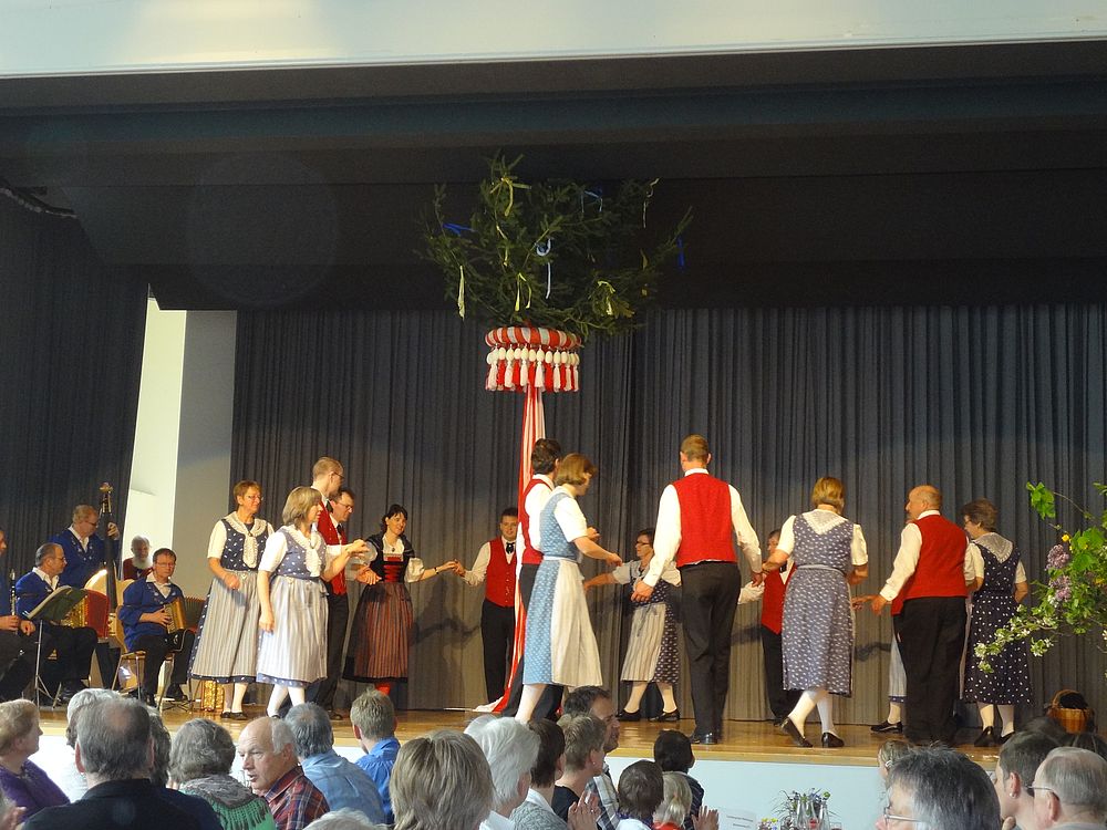 Da der Maitanzsonntag diesmal in der Turnhalle stattfand, fanden nicht wie sonst üblich zwei Maibäume nebeneinander Platz. Es war diesmal den Kindern vorbehalten, der vollbesetzten Halle den Maibaumtanz zu zeigen.