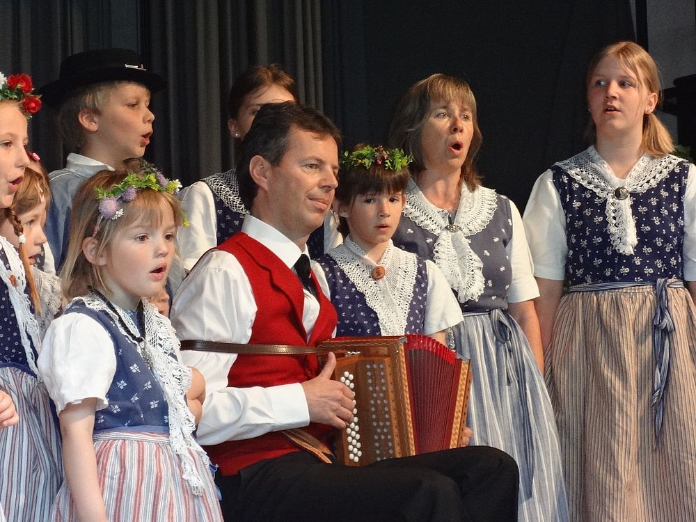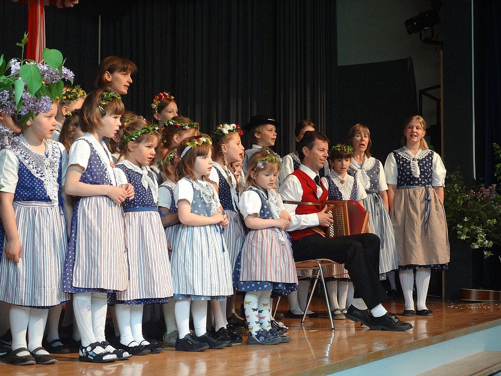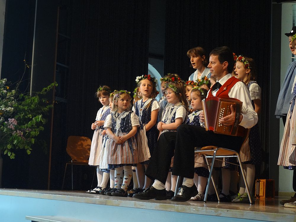 Kaum waren die Erwachsenen hinter dem Vorhang verschwunden, war schon die Kindergruppe bereit. Sie zeigten zwei Tänzli. Gleich anschliessend bewiesen sie, dass sie nicht nur gut Tanzen können, sondern auch hervorragend singen. Mit Örgelibegleitung haben sie "Vor mim Hüsli" zum Besten gegeben, was auch mit viel Applaus vom Publikum belohnt wurde.