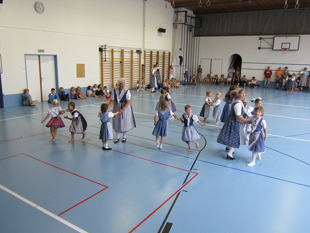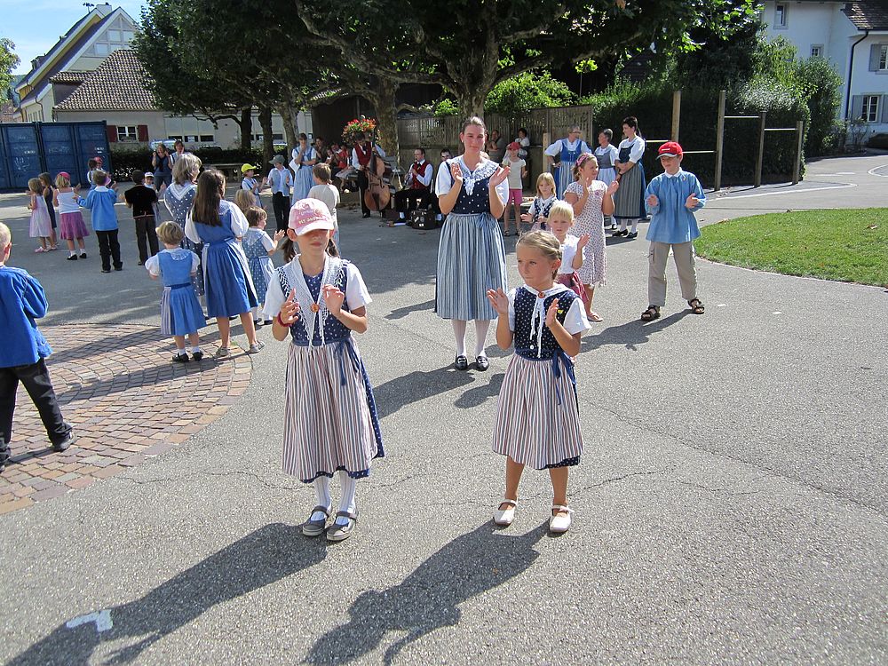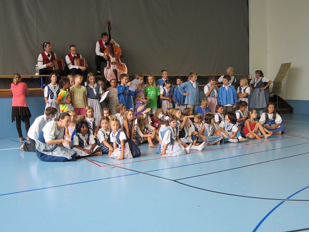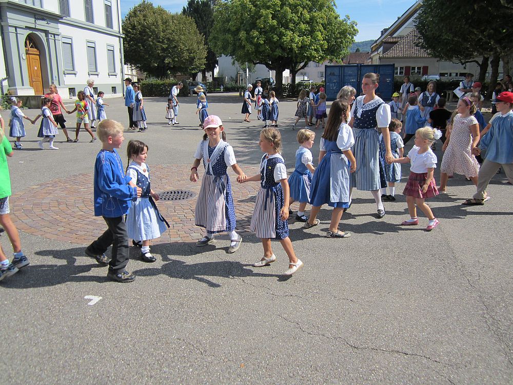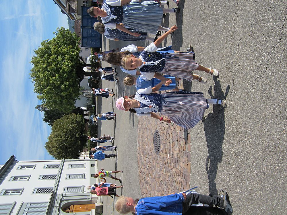 Knapp 70 Kinder aus dem ganzen Kanton Baselland und dem Fricktal besammelten sich bei strahlendem Sonnenschein auf dem Pausenplatz in Sissach. Mit einer grossen Polonaise und zwei Tänzen zu Livemusik wurde der Nachmittag gemeinsam eröffnet. Anschliessend wurden die Kinder in drei Altersgruppen aufgeteilt und übten während gut zwei Stunden verschiedene Tänze. Bei den mittleren und grossen Kindern wurde auch noch gesungen.