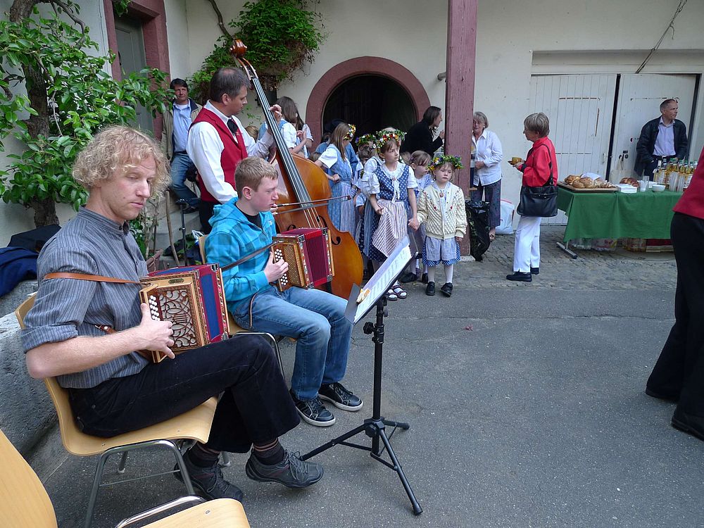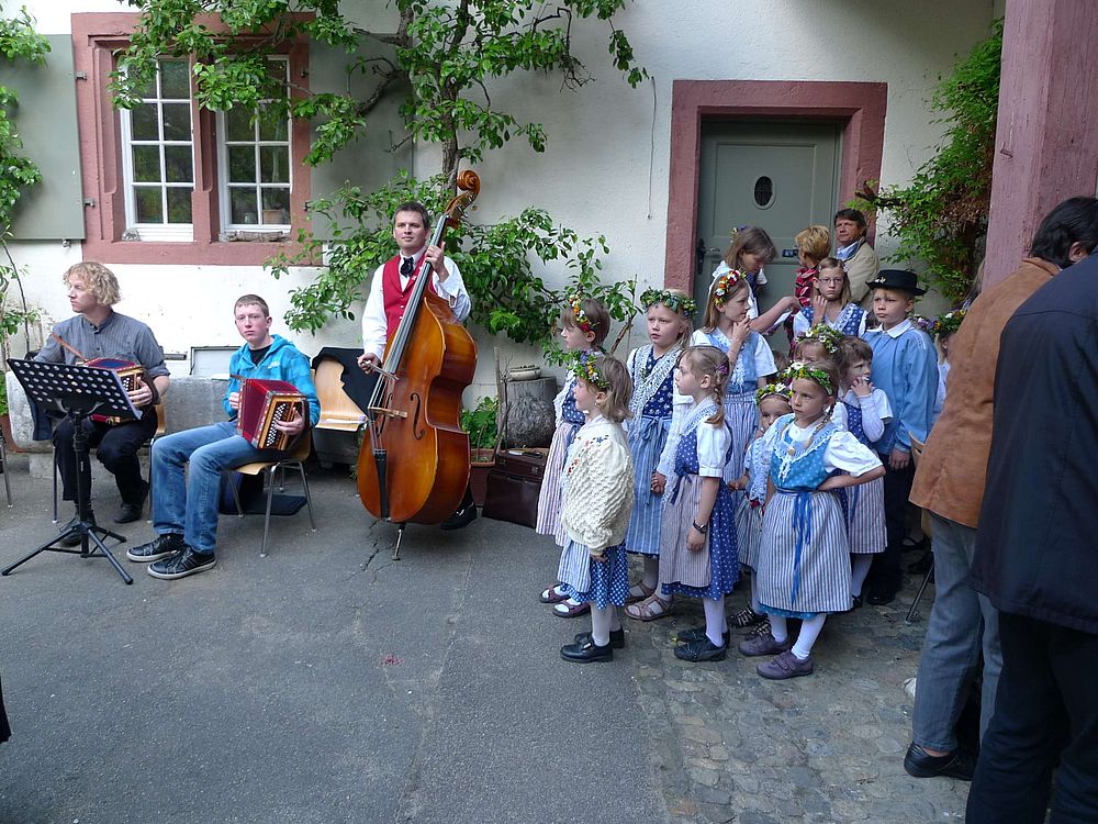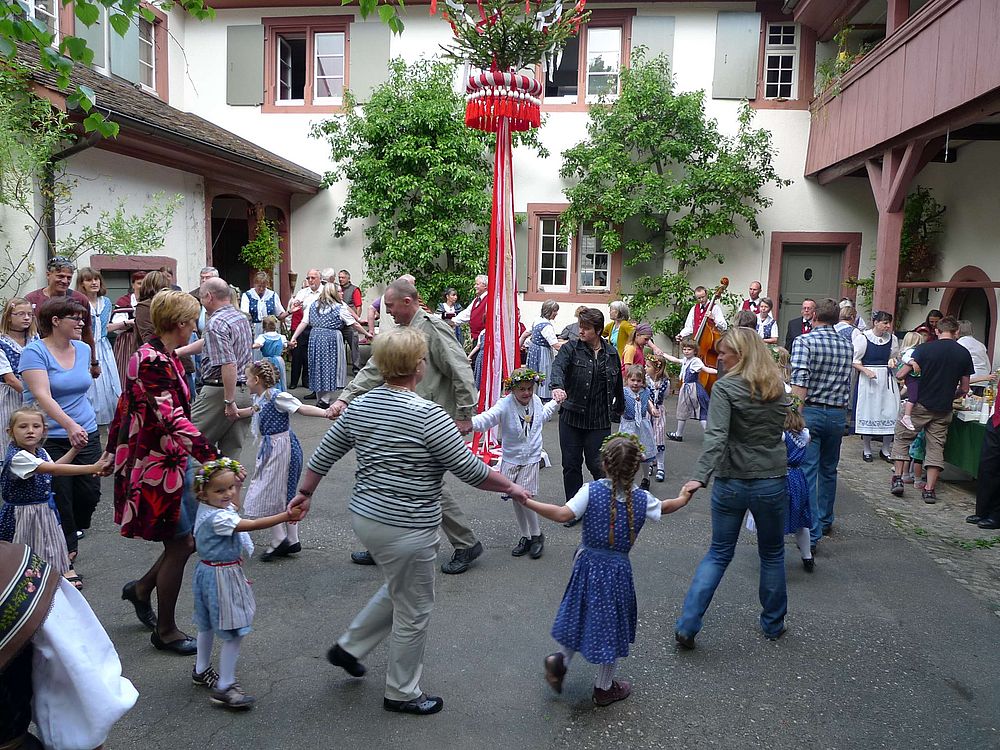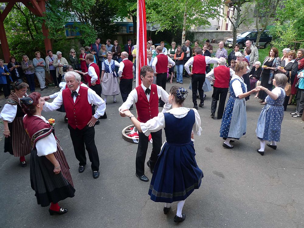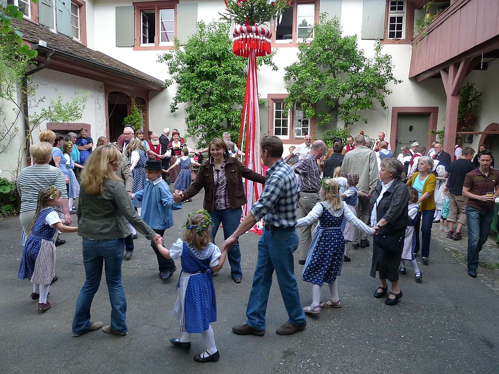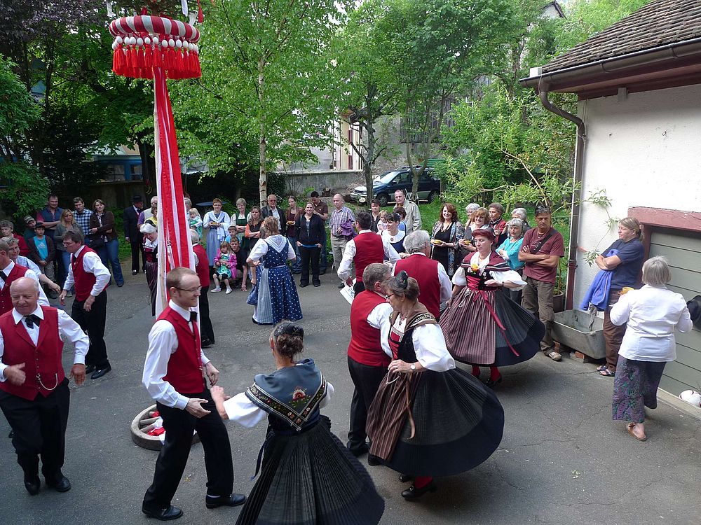 Anschliessend an den Gottesdienst fand im Pfarrgarten das Maitanzen statt. Die Erwachsenen tanzten , die Kinder tanzten , mal wurde zusammen getanzt, dann wurde gesungen und zu guter Letzt wurde noch der Maibaum mit den Kindern und Erwachsenen zusammen dargeboten.