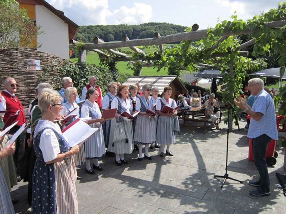 Die Kindertanzgruppe, die Tanzgruppe und der Chor traten an verschiedenen Plätzen mit Darbietungen aus dem Repertoire auf. Dazwischen hatte man Gelegenheit den schön angelegten Garten, ausgestellte Tiere, Ware aus den eigenen Werkstätten, kulinarische Köstlichkeiten oder verschiedene Wettkämpfe zu geniessen.