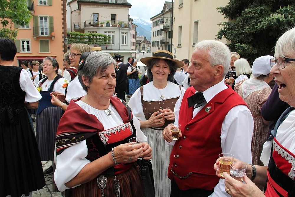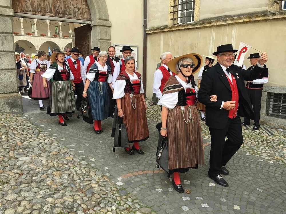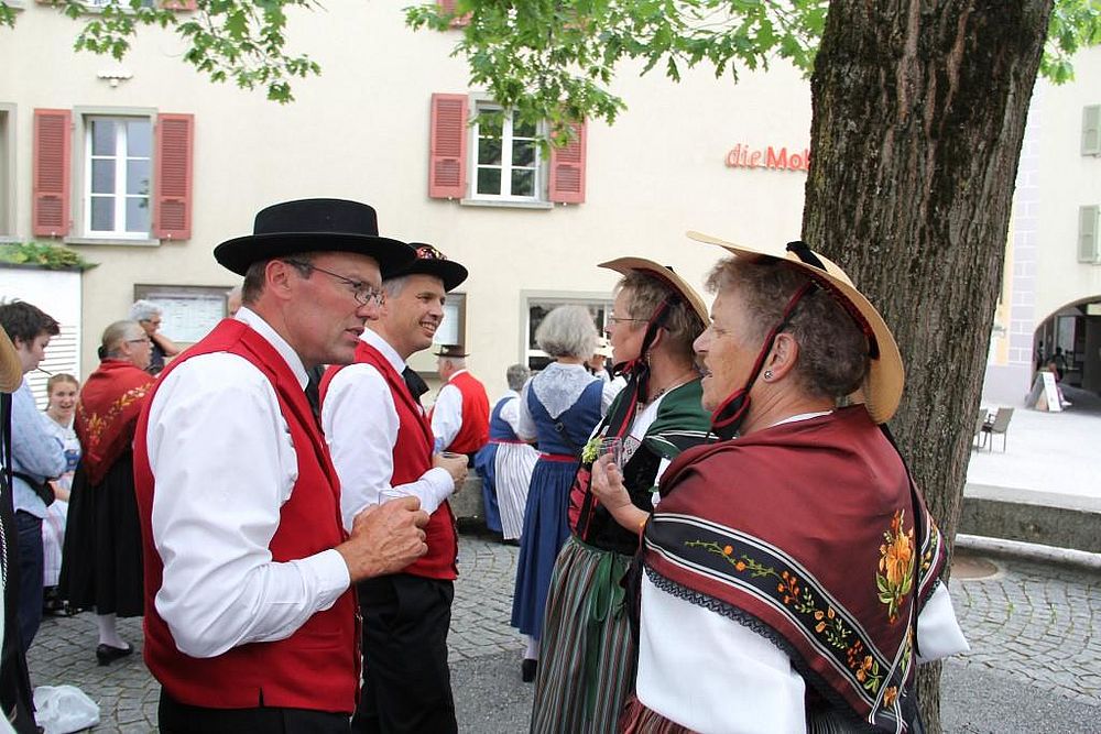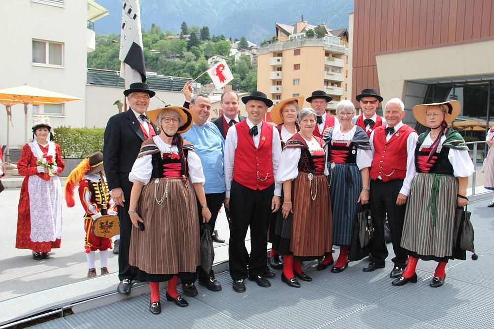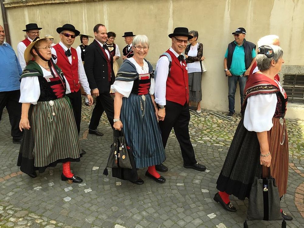 Am 9./10. Juni fand die Delegiertenversammlung der Schweizerischen Trachtenvereinigung in Brig statt. Im Gegensatz zu anderen Jahren war die Vertretung aus dem Baselbiet eher klein. Vertreten waren die Gruppen Sissach, Liestal, Waldenburgertal, Muttenz, Reinach und Am Birsfall Laufen. Es war ein vollauf gelungenes, fröhliches Fest mit viel Walliser Charme.