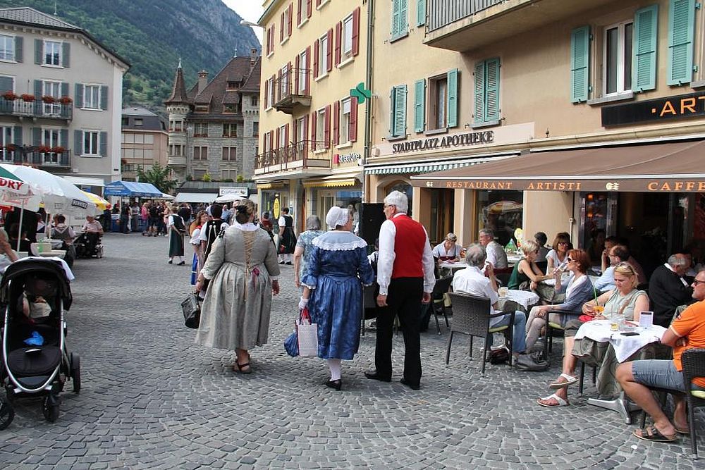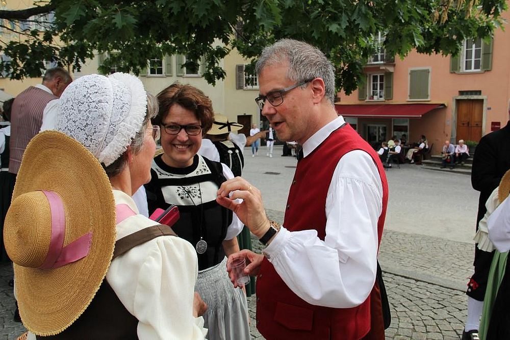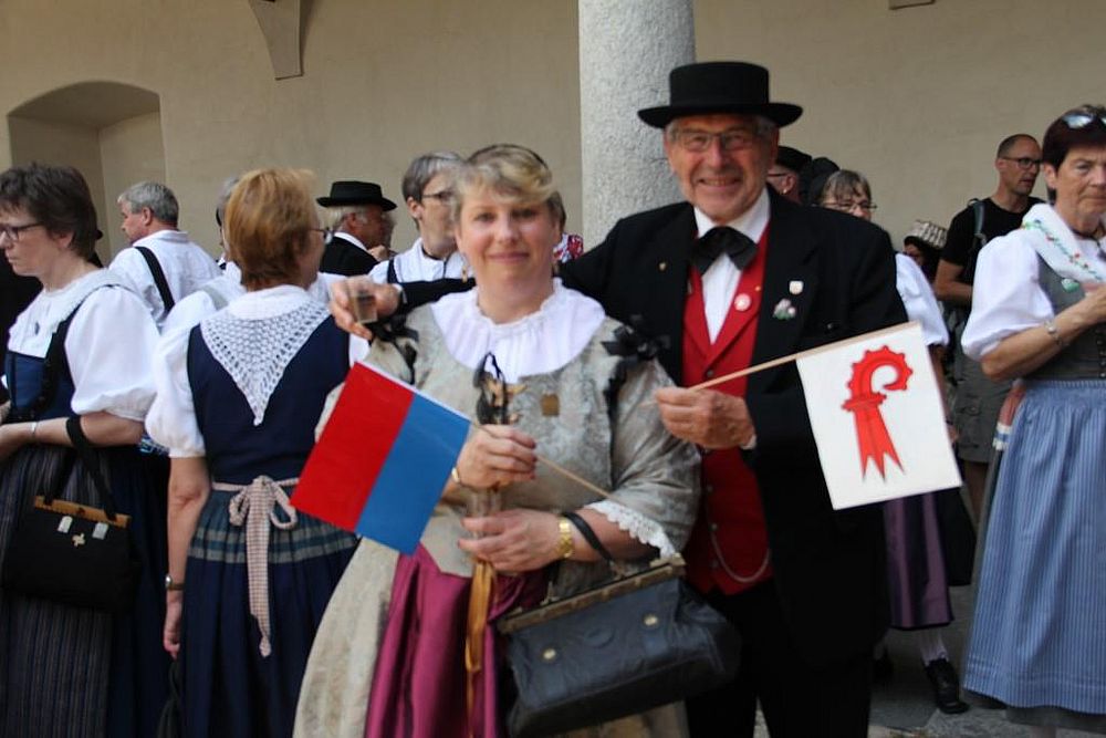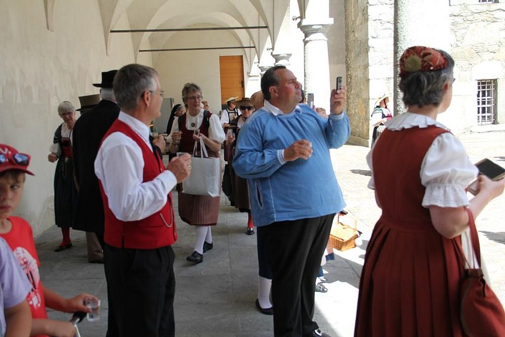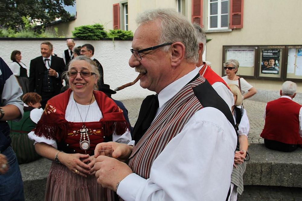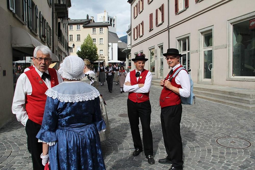 Am 9./10. Juni fand die Delegiertenversammlung der Schweizerischen Trachtenvereinigung in Brig statt. Im Gegensatz zu anderen Jahren war die Vertretung aus dem Baselbiet eher klein. Vertreten waren die Gruppen Sissach, Liestal, Waldenburgertal, Muttenz, Reinach und Am Birsfall Laufen. Es war ein vollauf gelungenes, fröhliches Fest mit viel Walliser Charme.
