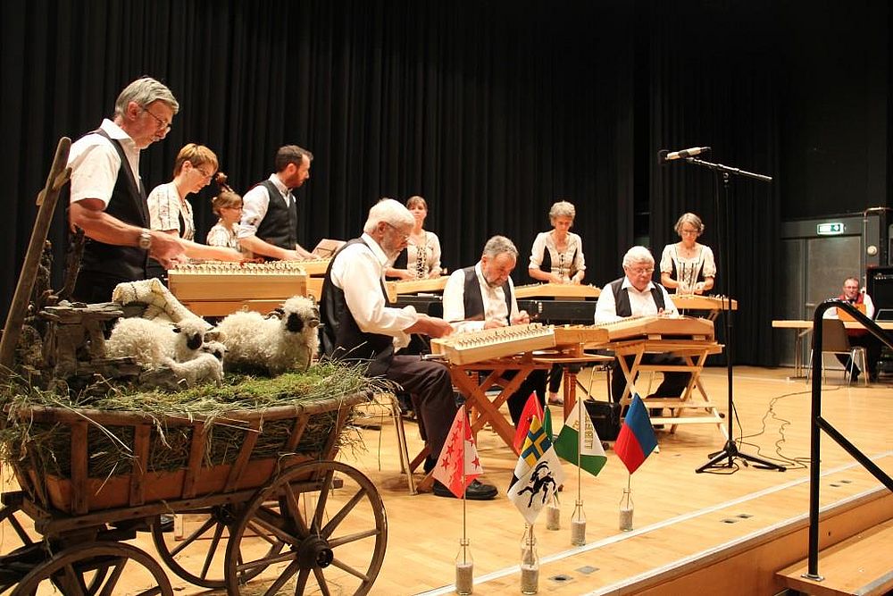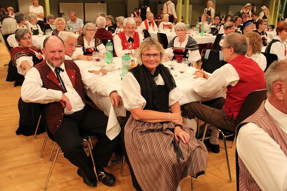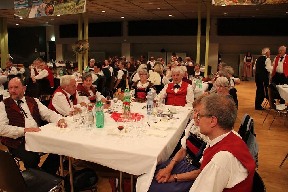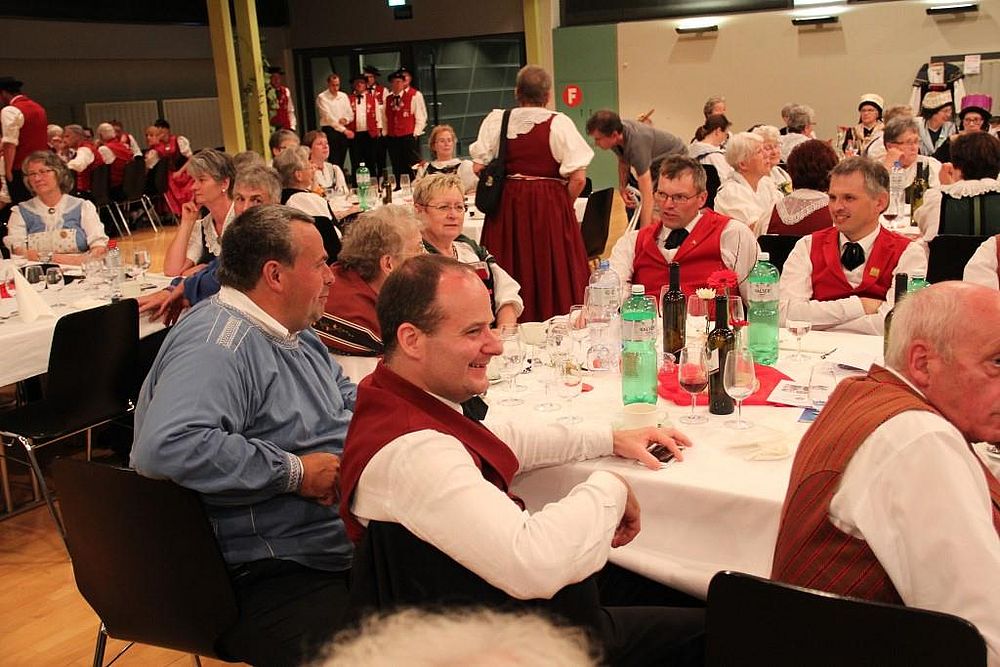 Bestens gelungener Walliser Galabend, mit feinen Walliser Spezialitäten (das unbekannteste war sicherlich das Dessert Sii – in Rotwein getränktes Roggenbrot) und zwischen jedem der 4 Gänge 1-2 Darbietungen und etwas Zeit zum Plaudern. Staunen löste eine 9 Personen umfassende Formation mit dem Walliser Hackbrett aus. Für die allermeisten ein unbekanntes Instrument. Klang wunderschön. Ebenso ein Leckerbissen der Jodlerklub Aletsch Naters. Als Eröffnung ein Kindertrio mit Schwyzerörgeli und jodeln. Aber auch ein Alphornduo mit 2 Fahnenschwingern. Ganz hohe Kunst war das gegenseitige Zuwerfen der Fahnen zum Partner. Ein Jugendchor mit Klavier- und z.T. auch Querflötenbegleitung brillierte mit weltbekannten Melodien. Durch das Programm führte eine Oberwalliser Volkskultur Persönlichkeit, wie zu Beginn und am Ende auch OK-Präsident Philipp Matthias Bregy.